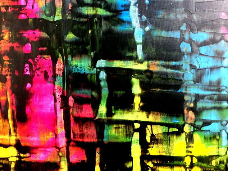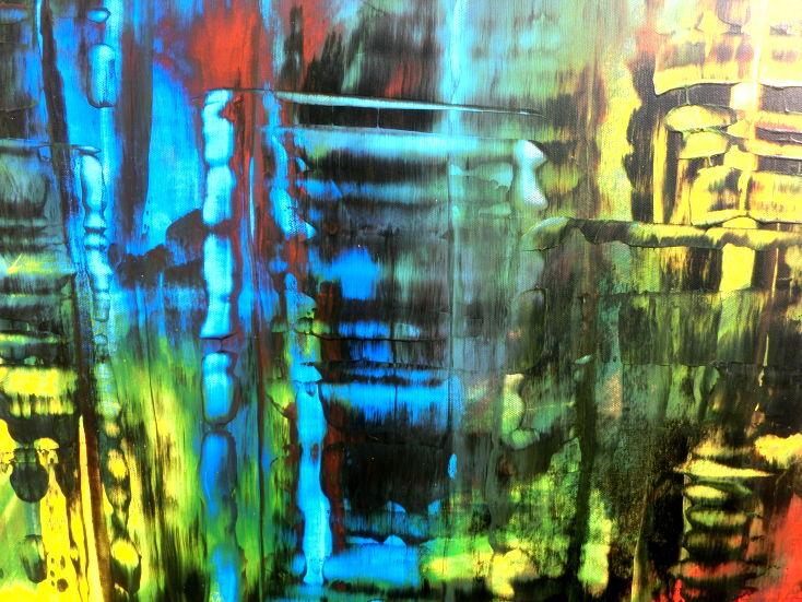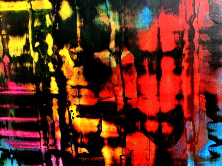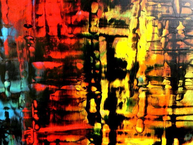 Dieses abstrakte Acrylbild ist ein handgemaltes Original vom Künstler Alex Zerr aus Bad Lisppringe und ist im Jahr 2016 in seinem Atelier entstanden. Das Bild hat eine Größe von 100x200cm und ist bereits auf einem hochwertigen und stabilem Rahmen aufgespannt. Dadurch kann das Bild nach der Lieferung direkt an die Wand gehängt werden und sofort in Ihrem Raum wirken. Alle Seiten des Gemäldes sind passend zum Motiv bemalt, so dass kein zusätzlicher Rahmen benötigt wird.