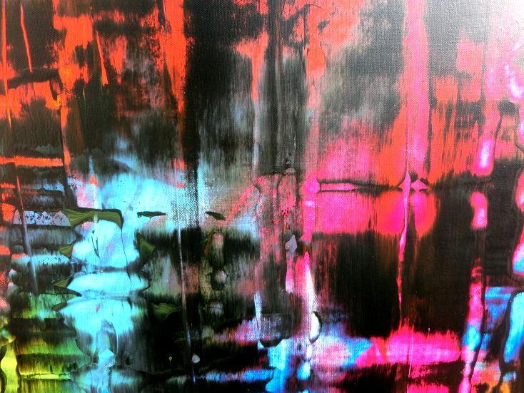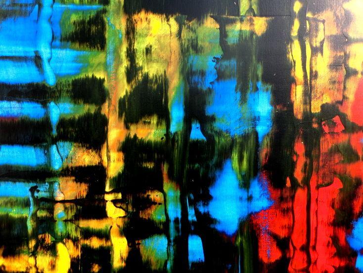 Dieses Werk ist wie alle meine Bilder: spontan entstanden, ganz intuitiv und ohne festes Konzept, und spiegelt oft meine momentane Stimmung wider wie auf der Leinwand festgehalten wurde.