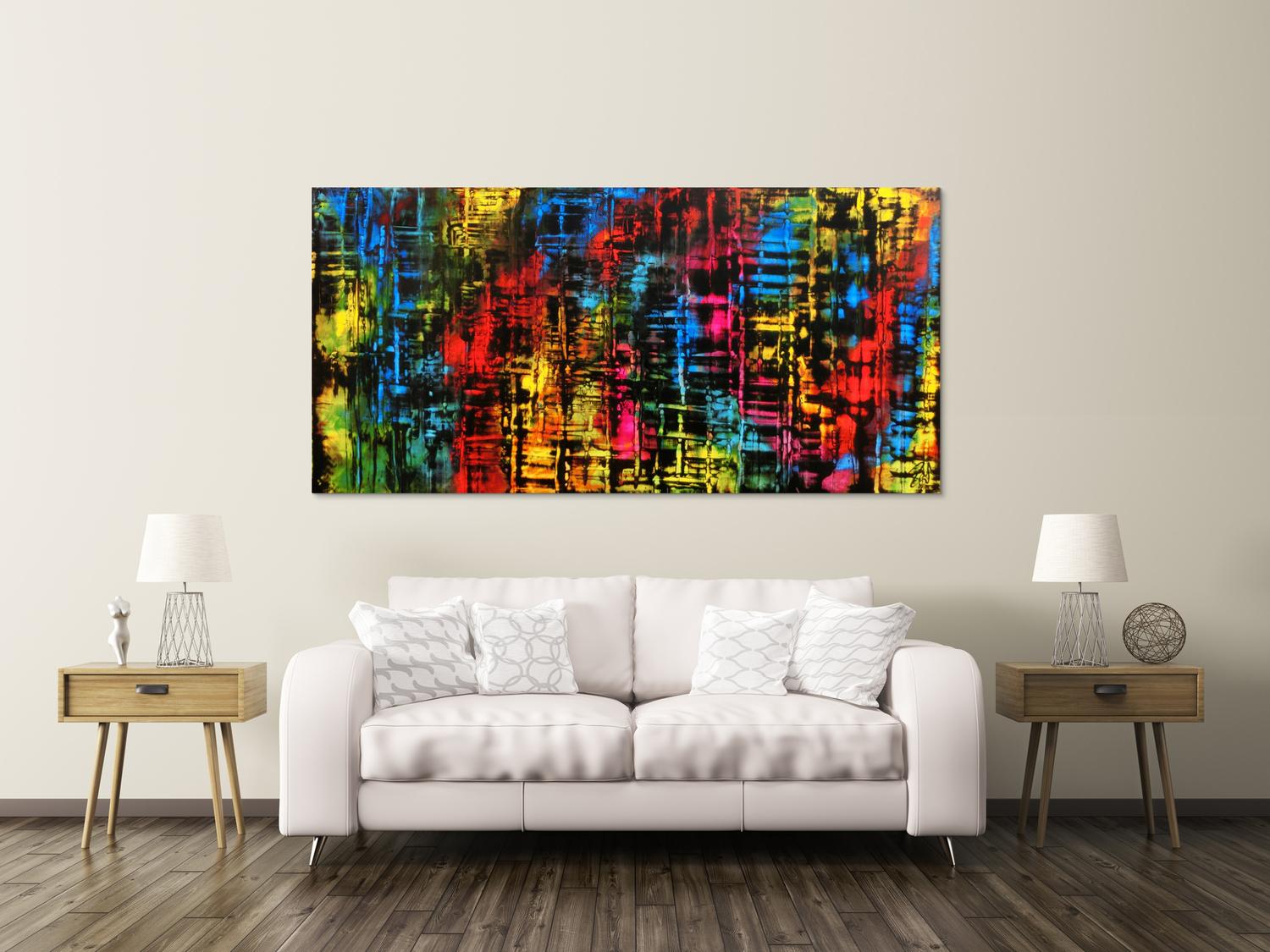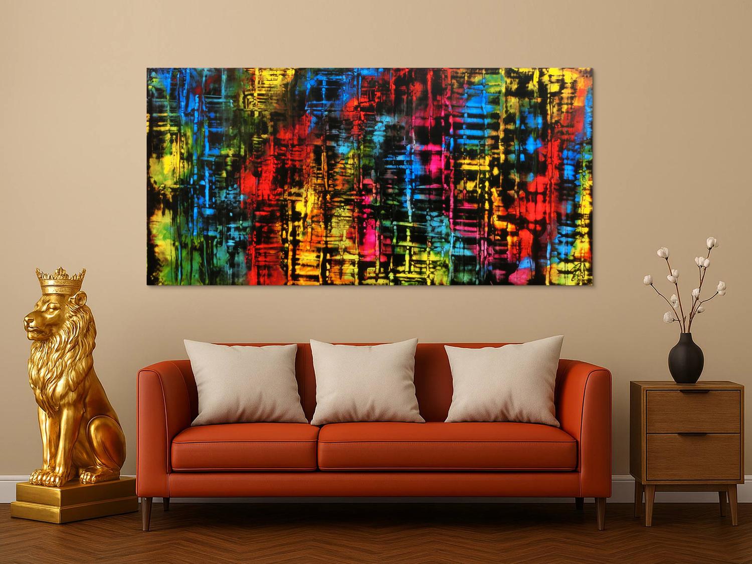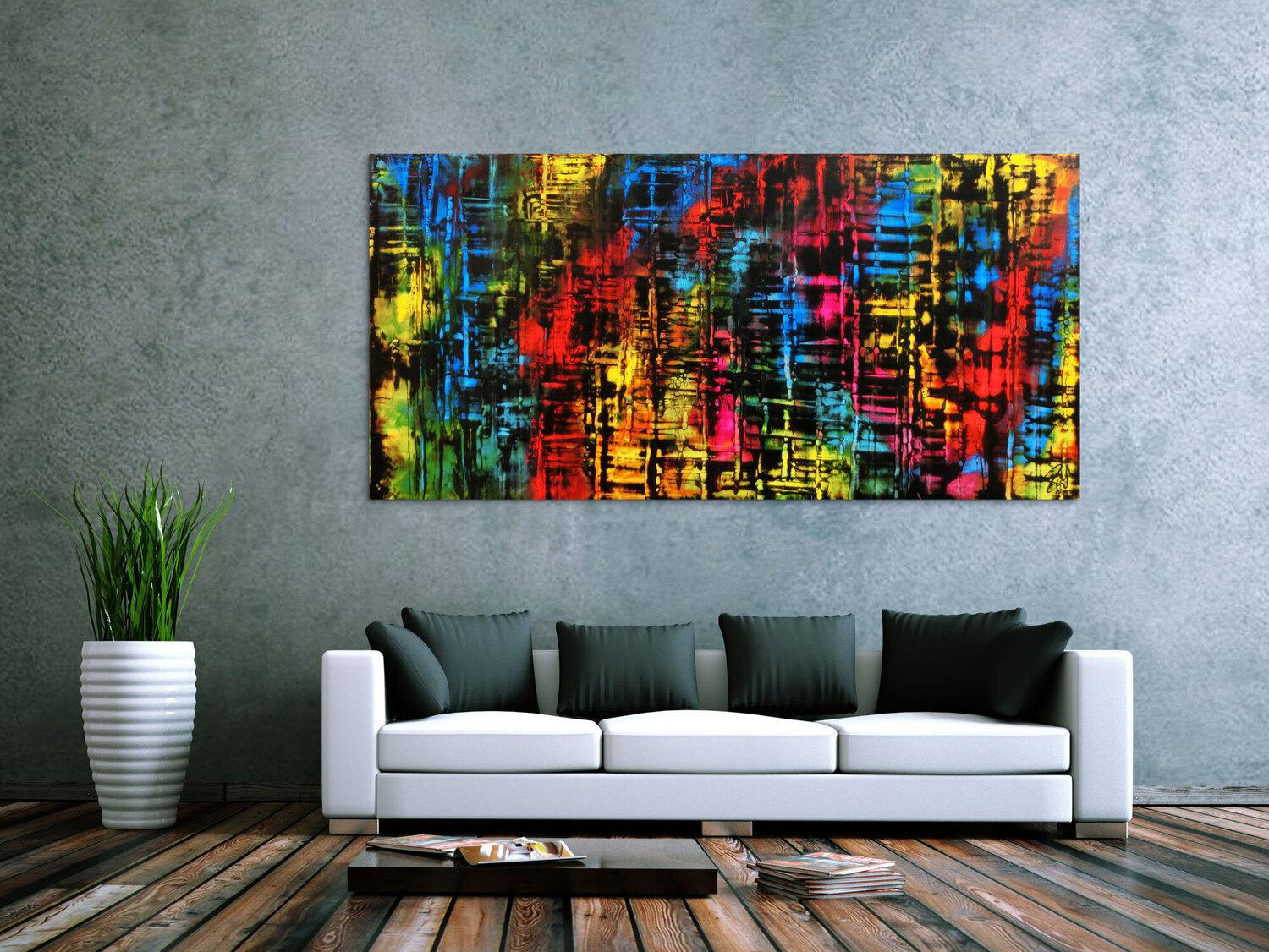 Abstraktes Gemälde auf Leinwand Buntes abstraktes Gemälde viele Farben sehr modern in 100x200cm von Alex Zerr
