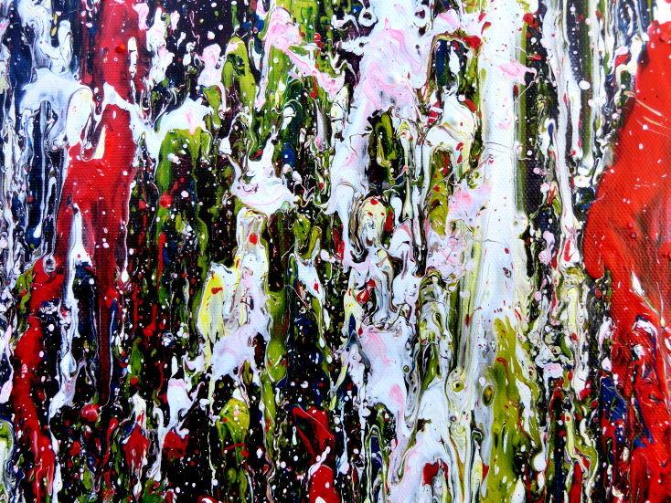 Dieses Werk ist wie alle meine Bilder: spontan entstanden, ganz intuitiv und ohne festes Konzept, und spiegelt oft meine momentane Stimmung wider wie auf der Leinwand festgehalten wurde.