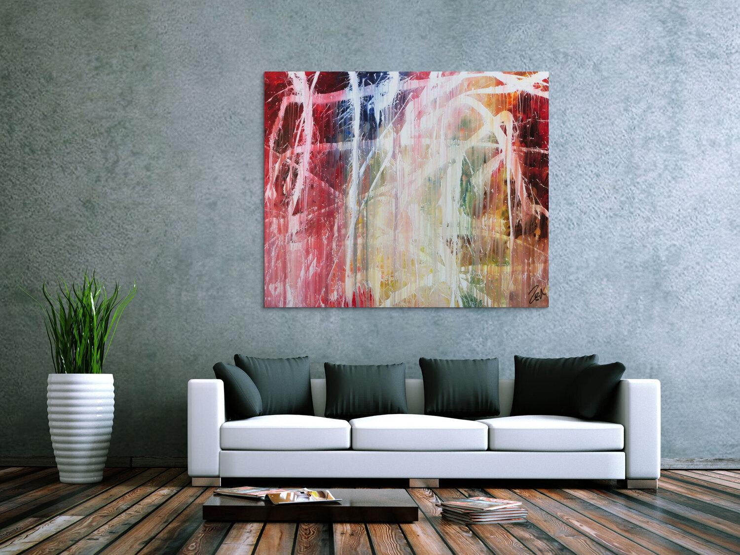 Die großformatigen, abstrakten Acrylgemälde sind ideal für Wohnzimmer, Schlafzimmer, Büros oder Geschäftsräume. Sie setzen farbenfrohe Akzente und schaffen eine lebendige, individuelle Atmosphäre die Sie und Ihre Gäste oder Kunden beeindrucken wird.