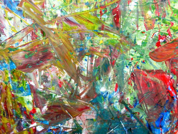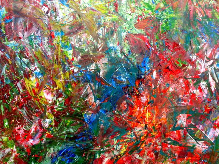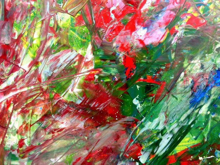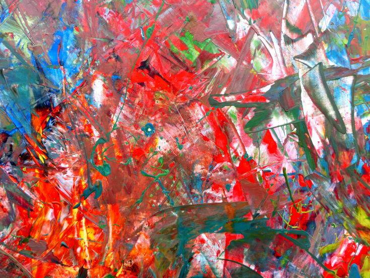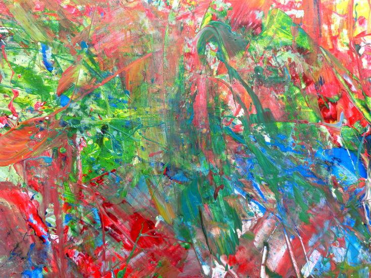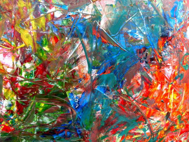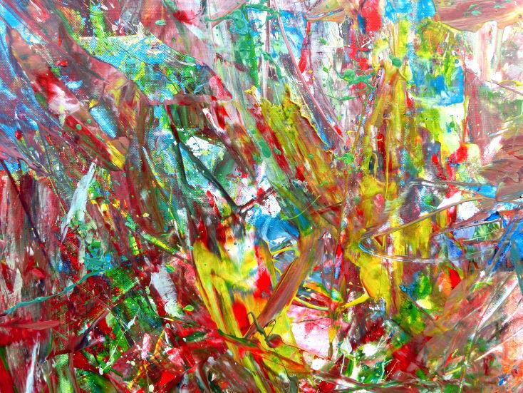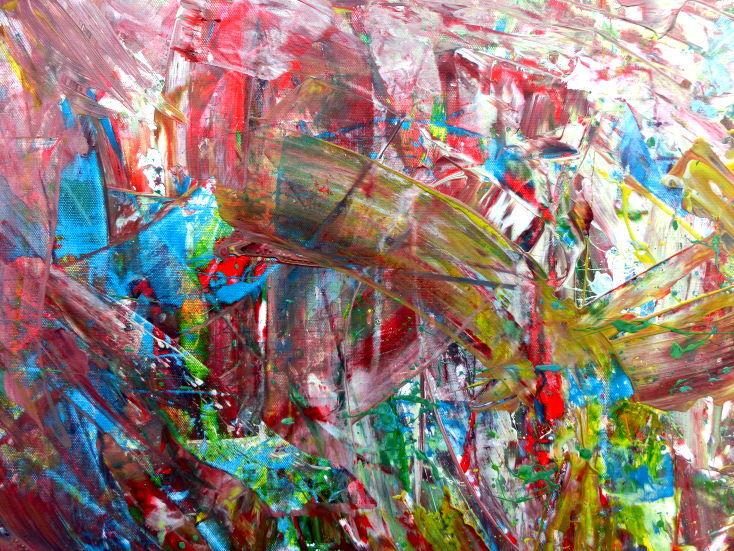 Dieses Werk ist wie alle meine Bilder: spontan entstanden, ganz intuitiv und ohne festes Konzept, und spiegelt oft meine momentane Stimmung wider wie auf der Leinwand festgehalten wurde.