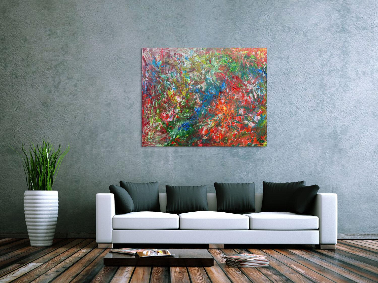 Abstraktes Gemälde auf Leinwand Buntes Acrylbild abstrakt modern viele Farben in 100x120cm von Alex Zerr