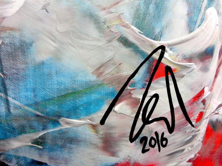 Dieses abstrakte Acrylbild ist ein handgemaltes Original vom Künstler Alex Zerr aus Bad Lisppringe und ist im Jahr 2016 in seinem Atelier entstanden. Das Bild hat eine Größe von 100x160cm und ist bereits auf einem hochwertigen und stabilem Rahmen aufgespannt. Dadurch kann das Bild nach der Lieferung direkt an die Wand gehängt werden und sofort in Ihrem Raum wirken. Alle Seiten des Gemäldes sind passend zum Motiv bemalt, so dass kein zusätzlicher Rahmen benötigt wird.