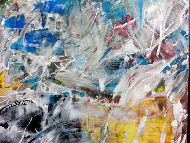 Hallo, ich bin Alex Zerr, der Künstler hinter diesem Gemälde. In meinem Atelier in Bad Lippspringe erschaffe ich abstrakte Acrylbilder, überwiegend im Action-Painting-Stil. Meißtens mit Acrylfarben und auf sehr großen XXL-Leinwänden, die meinem kreativen Prozess besonders viel Freiheit erlauben und oft zu beeindruckenden Gemälden führen.