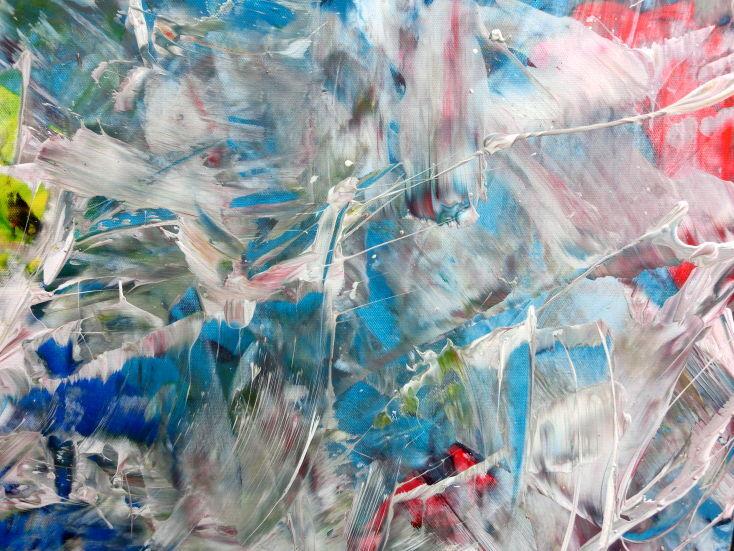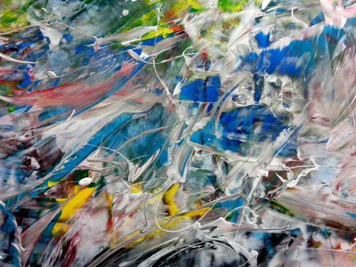 Dieses Werk ist wie alle meine Bilder: spontan entstanden, ganz intuitiv und ohne festes Konzept, und spiegelt oft meine momentane Stimmung wider wie auf der Leinwand festgehalten wurde.