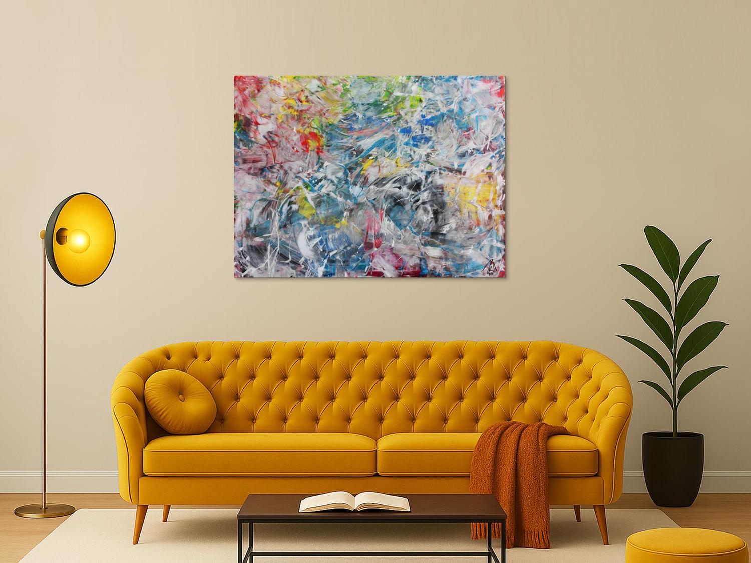 Die großformatigen, abstrakten Acrylgemälde sind ideal für Wohnzimmer, Schlafzimmer, Büros oder Geschäftsräume. Sie setzen farbenfrohe Akzente und schaffen eine lebendige, individuelle Atmosphäre die Sie und Ihre Gäste oder Kunden beeindrucken wird.