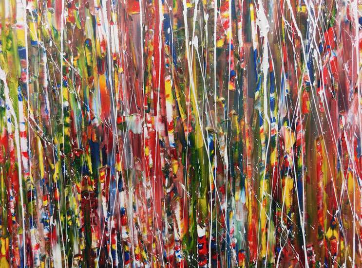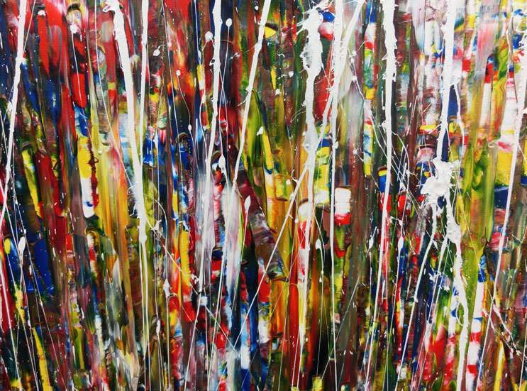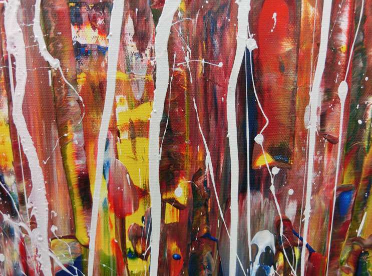 Hallo, ich bin Alex Zerr, der Künstler hinter diesem Gemälde. In meinem Atelier in Bad Lippspringe erschaffe ich abstrakte Acrylbilder, überwiegend im Action-Painting-Stil. Meißtens mit Acrylfarben und auf sehr großen XXL-Leinwänden, die meinem kreativen Prozess besonders viel Freiheit erlauben und oft zu beeindruckenden Gemälden führen.