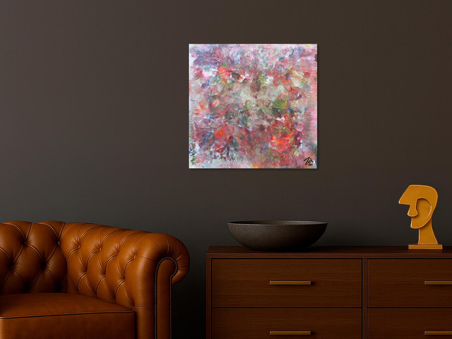 Abstraktes Gemälde auf Leinwand Buntes Acrylbild mit hellen Farben moderne abstrakt in 60x60cm von Alex Zerr