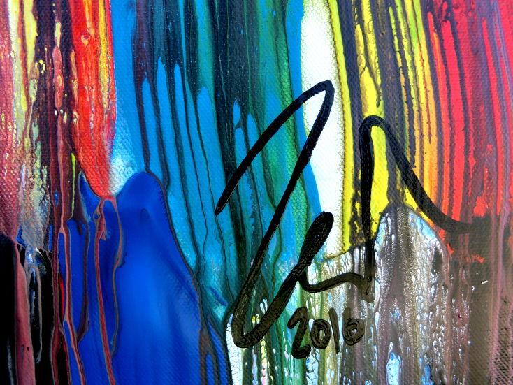 Dieses abstrakte Acrylbild ist ein handgemaltes Original vom Künstler Alex Zerr aus Bad Lisppringe und ist im Jahr 2016 in seinem Atelier entstanden. Das Bild hat eine Größe von 100x130cm und ist bereits auf einem hochwertigen und stabilem Rahmen aufgespannt. Dadurch kann das Bild nach der Lieferung direkt an die Wand gehängt werden und sofort in Ihrem Raum wirken. Alle Seiten des Gemäldes sind passend zum Motiv bemalt, so dass kein zusätzlicher Rahmen benötigt wird.