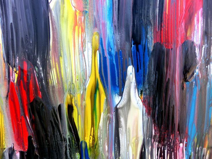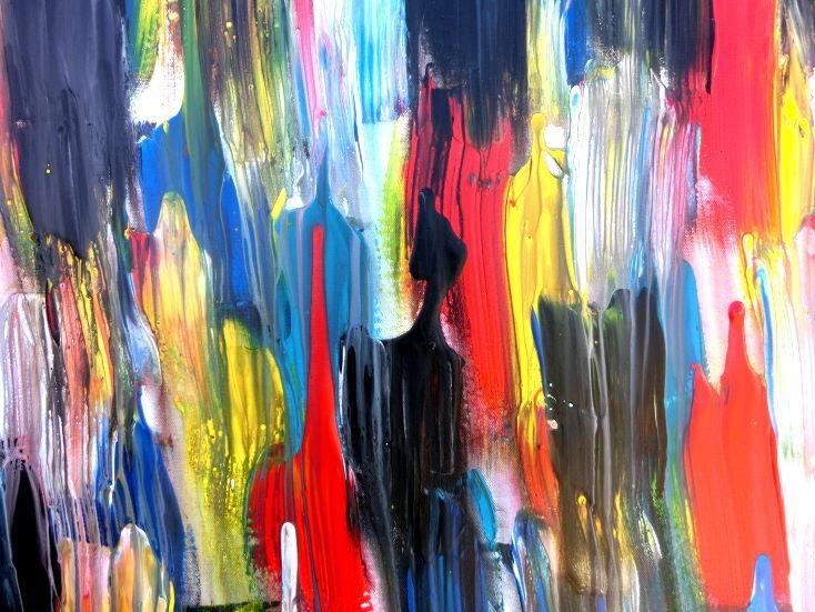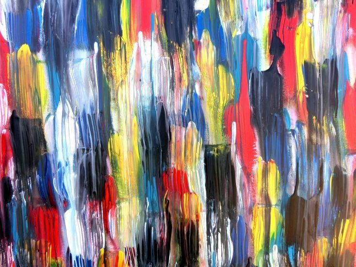 Buntes Acrylbild modern abstrakt viele Farben rot blau gelb