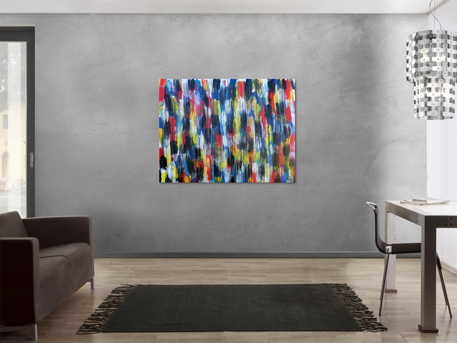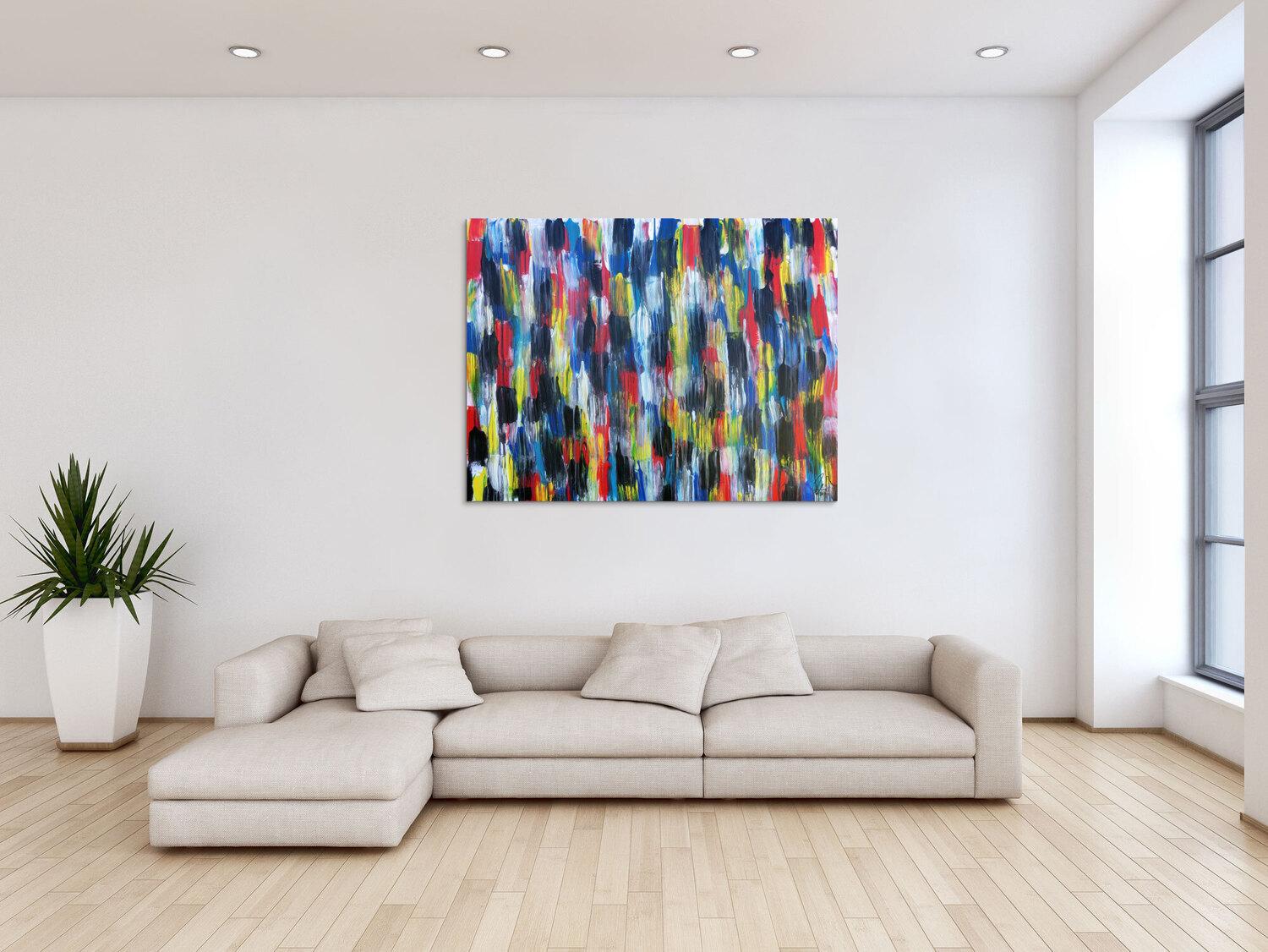 Abstraktes Gemälde auf Leinwand Buntes Acrylbild modern abstrakt viele Farben rot blau gelb in 100x130cm von Alex Zerr