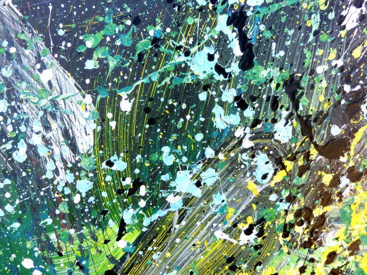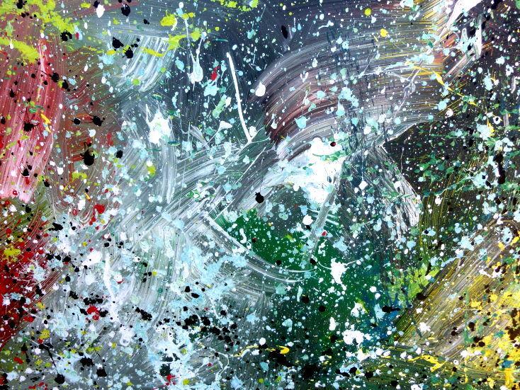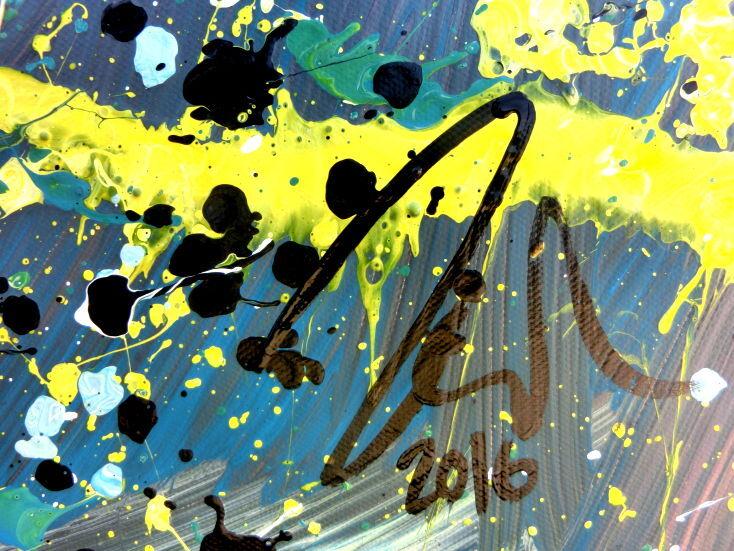 Dieses Werk ist wie alle meine Bilder: spontan entstanden, ganz intuitiv und ohne festes Konzept, und spiegelt oft meine momentane Stimmung wider wie auf der Leinwand festgehalten wurde.