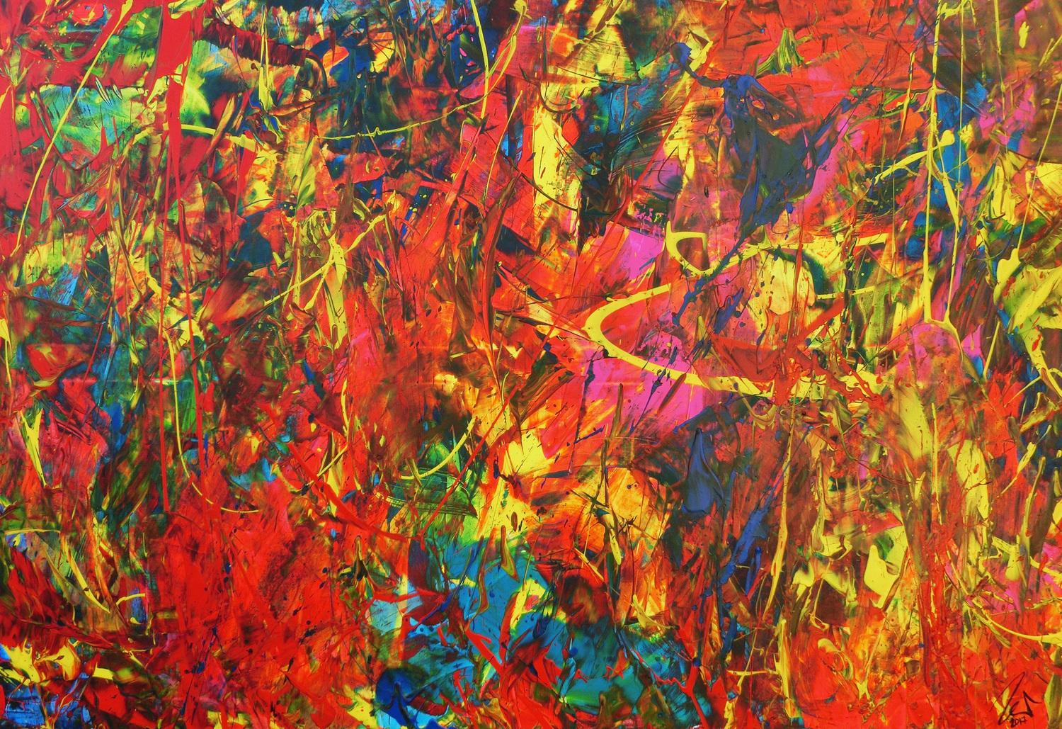 Hallo, ich bin Alex Zerr, der Künstler hinter diesem Gemälde. In meinem Atelier in Bad Lippspringe erschaffe ich abstrakte Acrylbilder, überwiegend im Action-Painting-Stil. Meißtens mit Acrylfarben und auf sehr großen XXL-Leinwänden, die meinem kreativen Prozess besonders viel Freiheit erlauben und oft zu beeindruckenden Gemälden führen.