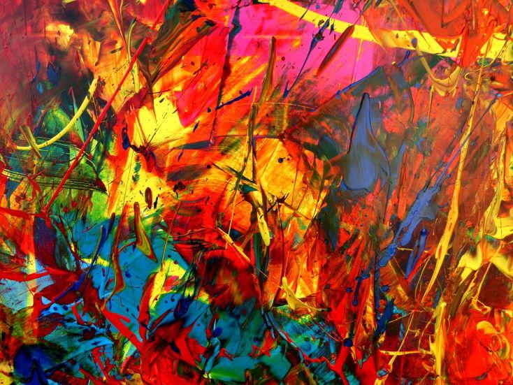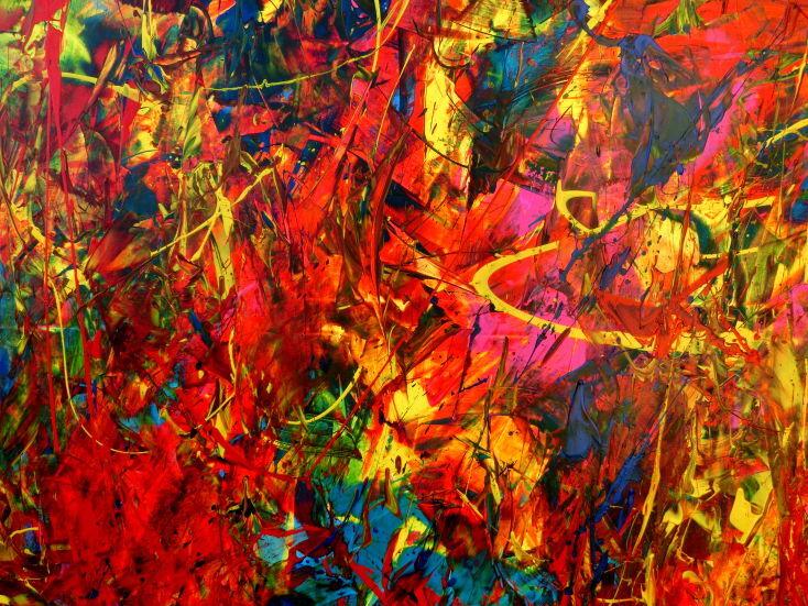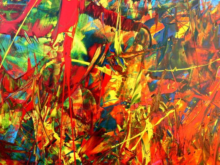 Dieses Werk ist wie alle meine Bilder: spontan entstanden, ganz intuitiv und ohne festes Konzept, und spiegelt oft meine momentane Stimmung wider wie auf der Leinwand festgehalten wurde.