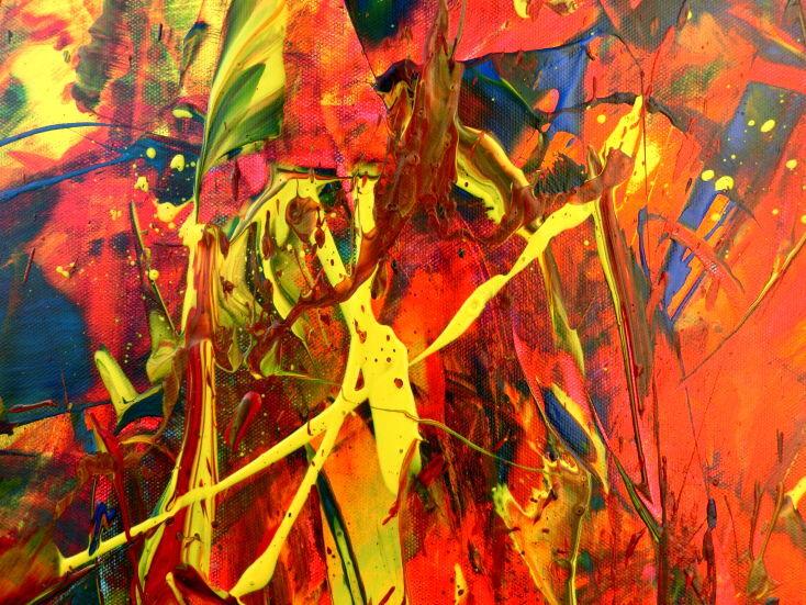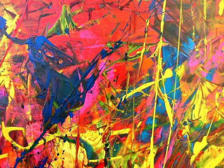 Buntes Acrylbild Spachteltechnik sehr modern und farbenfroh in ornge und gelb blau