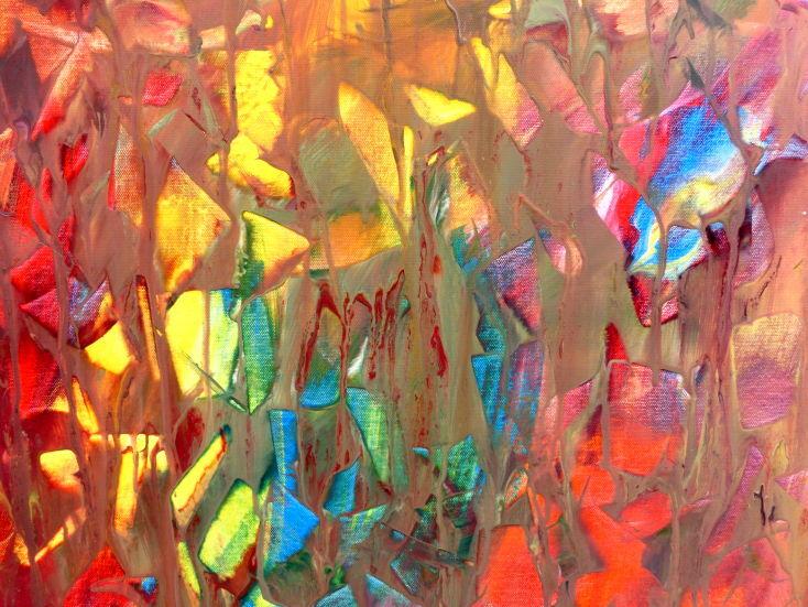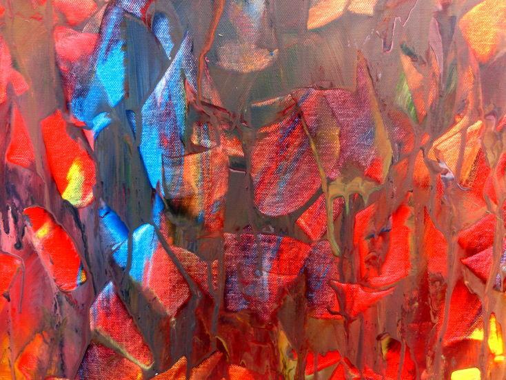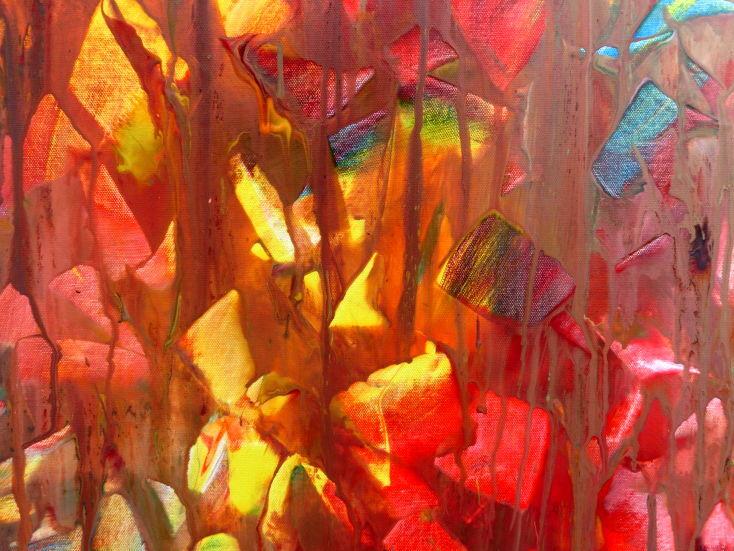 Dieses Werk ist wie alle meine Bilder: spontan entstanden, ganz intuitiv und ohne festes Konzept, und spiegelt oft meine momentane Stimmung wider wie auf der Leinwand festgehalten wurde.