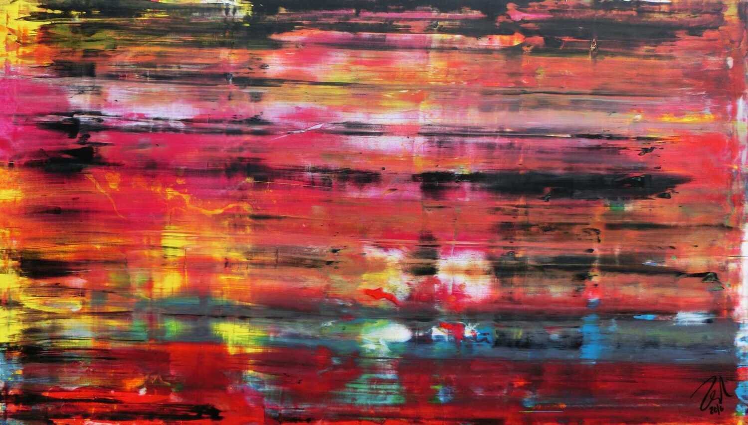 Dieses abstrakte Acrylbild ist ein handgemaltes Original vom Künstler Alex Zerr aus Bad Lisppringe und ist im Jahr 2016 in seinem Atelier entstanden. Das Bild hat eine Größe von 80x140cm und ist bereits auf einem hochwertigen und stabilem Rahmen aufgespannt. Dadurch kann das Bild nach der Lieferung direkt an die Wand gehängt werden und sofort in Ihrem Raum wirken. Alle Seiten des Gemäldes sind passend zum Motiv bemalt, so dass kein zusätzlicher Rahmen benötigt wird.
