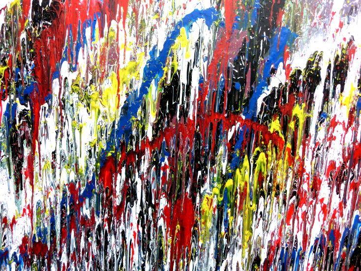 Hallo, ich bin Alex Zerr, der Künstler hinter diesem Gemälde. In meinem Atelier in Bad Lippspringe erschaffe ich abstrakte Acrylbilder, überwiegend im Action-Painting-Stil. Meißtens mit Acrylfarben und auf sehr großen XXL-Leinwänden, die meinem kreativen Prozess besonders viel Freiheit erlauben und oft zu beeindruckenden Gemälden führen.