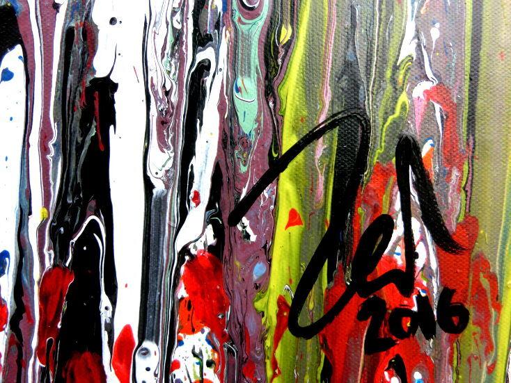 Dieses abstrakte Acrylbild ist ein handgemaltes Original vom Künstler Alex Zerr aus Bad Lisppringe und ist im Jahr 2016 in seinem Atelier entstanden. Das Bild hat eine Größe von 100x200cm und ist bereits auf einem hochwertigen und stabilem Rahmen aufgespannt. Dadurch kann das Bild nach der Lieferung direkt an die Wand gehängt werden und sofort in Ihrem Raum wirken. Alle Seiten des Gemäldes sind passend zum Motiv bemalt, so dass kein zusätzlicher Rahmen benötigt wird.