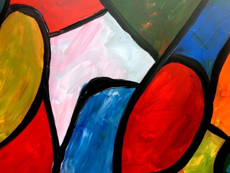 Buntes Gemälde mit vielen farbigen Flächen modern abstrakt