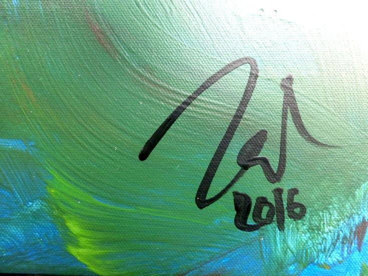 Das Bild ist vom Künster Alex Zerr auf der Vorderseite signiert ggf. ist auf der Rückseite des Bildes der Handabdruck des Künstlers zu finden. Dadurch erhält das Bild ein nicht zu kopierendes und persönliches "Siegel", wodurch Ihnen die Echtheit garantiert wird.