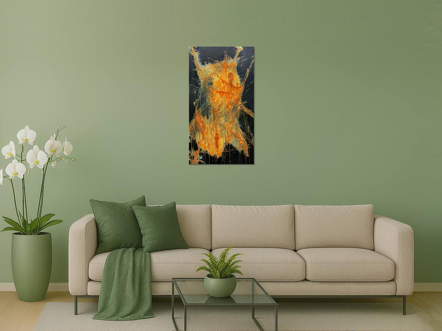 Dieses Werk ist wie alle meine Bilder: spontan entstanden, ganz intuitiv und ohne festes Konzept, und spiegelt oft meine momentane Stimmung wider wie auf der Leinwand festgehalten wurde.