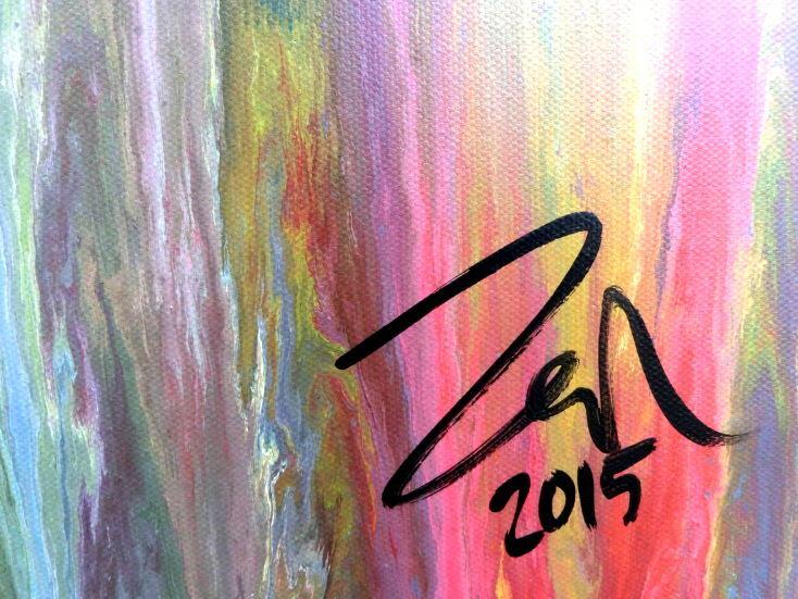 Jedes Gemälde ist auf einem massiven Keilrahmen aufgespannt, welcher speziell für große Gemälde ausgelegt ist und aus verzug sicherem keilgezinkten Holz besteht.