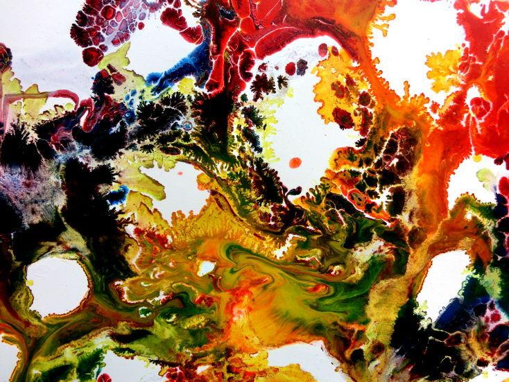 Dieses Werk ist wie alle meine Bilder: spontan entstanden, ganz intuitiv und ohne festes Konzept, und spiegelt oft meine momentane Stimmung wider wie auf der Leinwand festgehalten wurde.