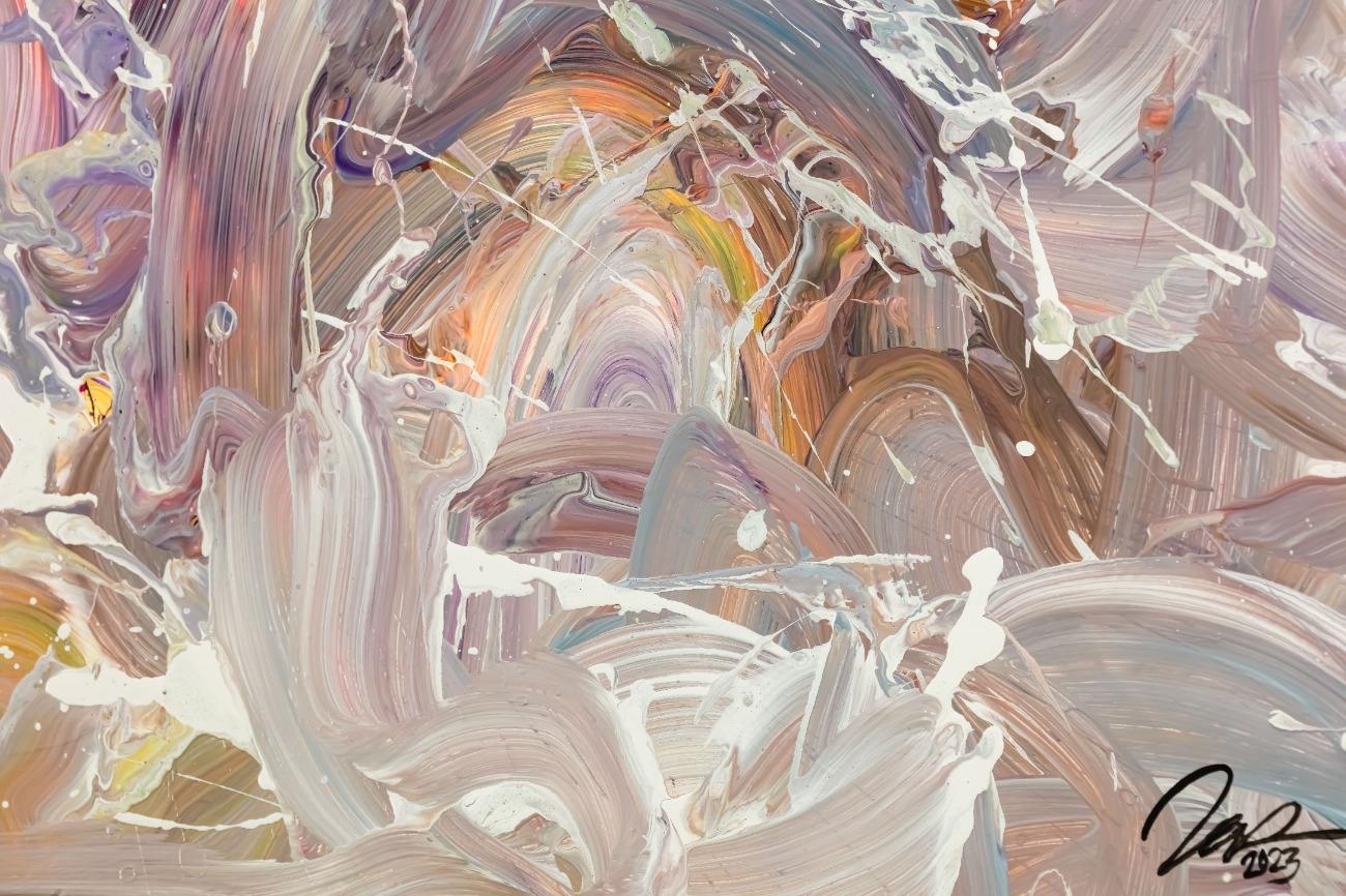 Hallo, ich bin Alex Zerr, der Künstler hinter diesem Gemälde. In meinem Atelier in Bad Lippspringe erschaffe ich abstrakte Acrylbilder, überwiegend im Action-Painting-Stil. Meißtens mit Acrylfarben und auf sehr großen XXL-Leinwänden, die meinem kreativen Prozess besonders viel Freiheit erlauben und oft zu beeindruckenden Gemälden führen.