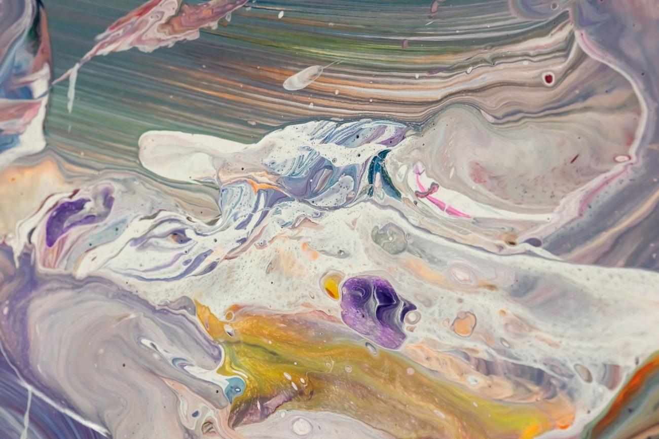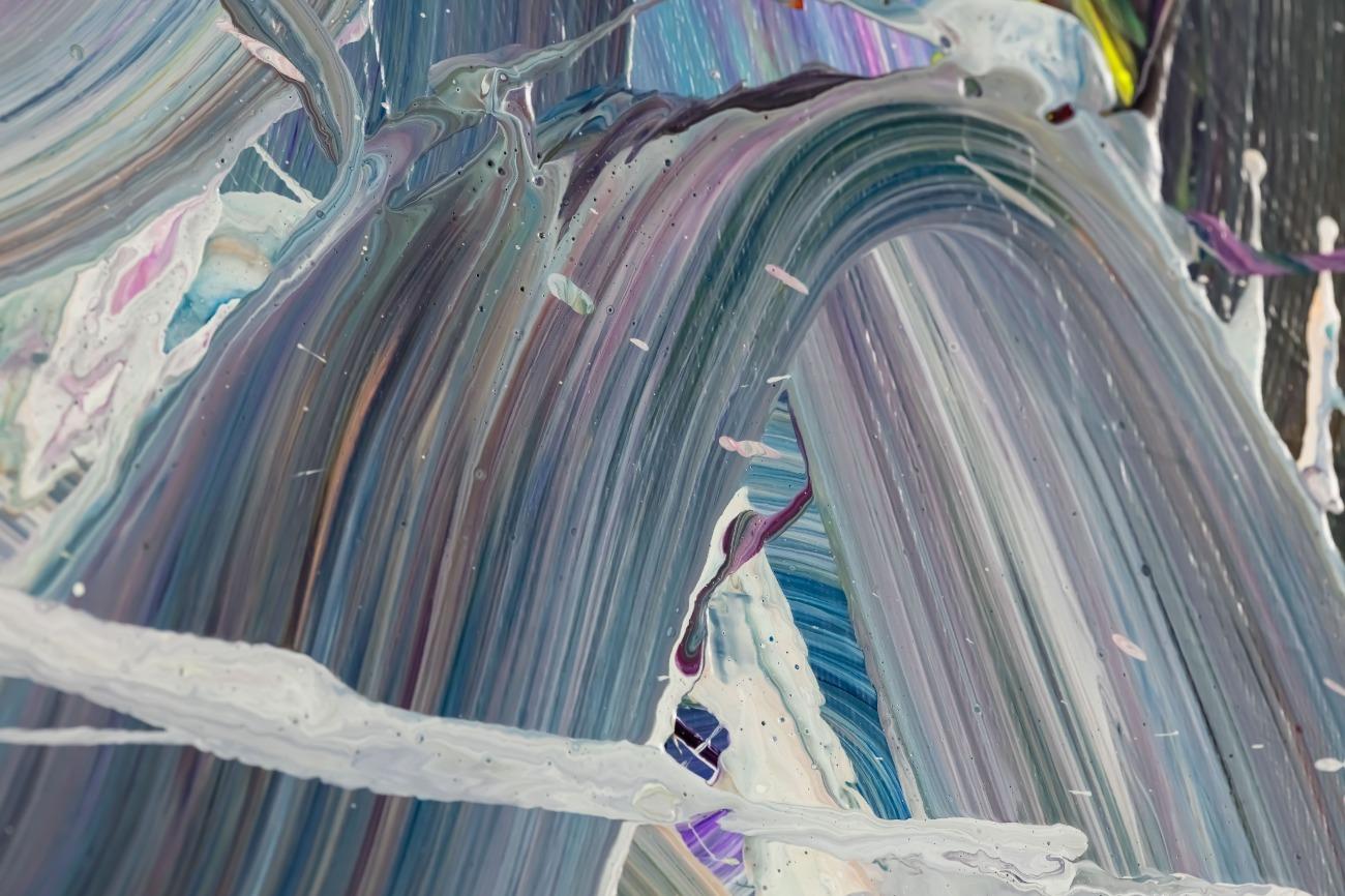 Gemälde Original abstrakt 100x180cm Mischtechnik expressionistisch handgemalt Fluid Painting weiß flieder türkis Unikat