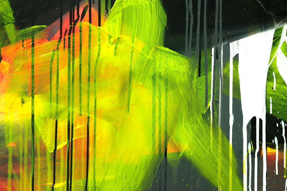 Abstraktes Gemälde auf Leinwand Gemälde Original abstrakt 100x200cm Action Painting expressionistisch auf Leinwand Mischtechnik schwarz weiß gelb hochwertig in 100x200cm von Alex Zerr