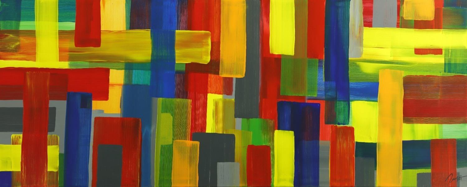 Gemälde Original abstrakt 100x250cm Mischtechnik Moderne Kunst auf Leinwand rot gelb blau grün Einzelstück