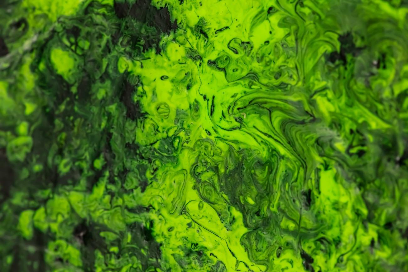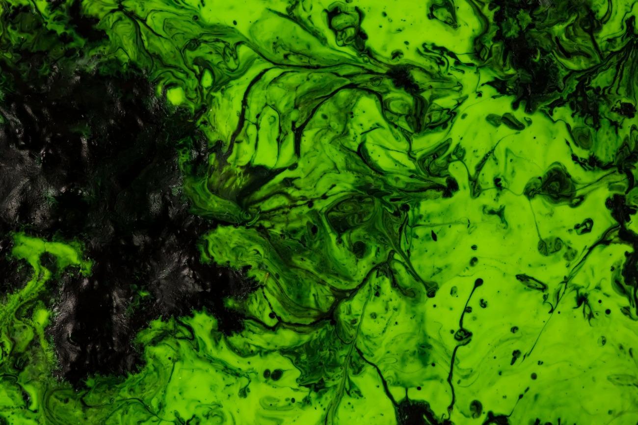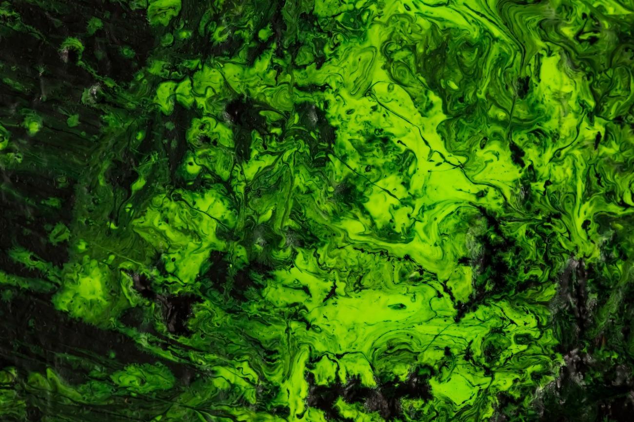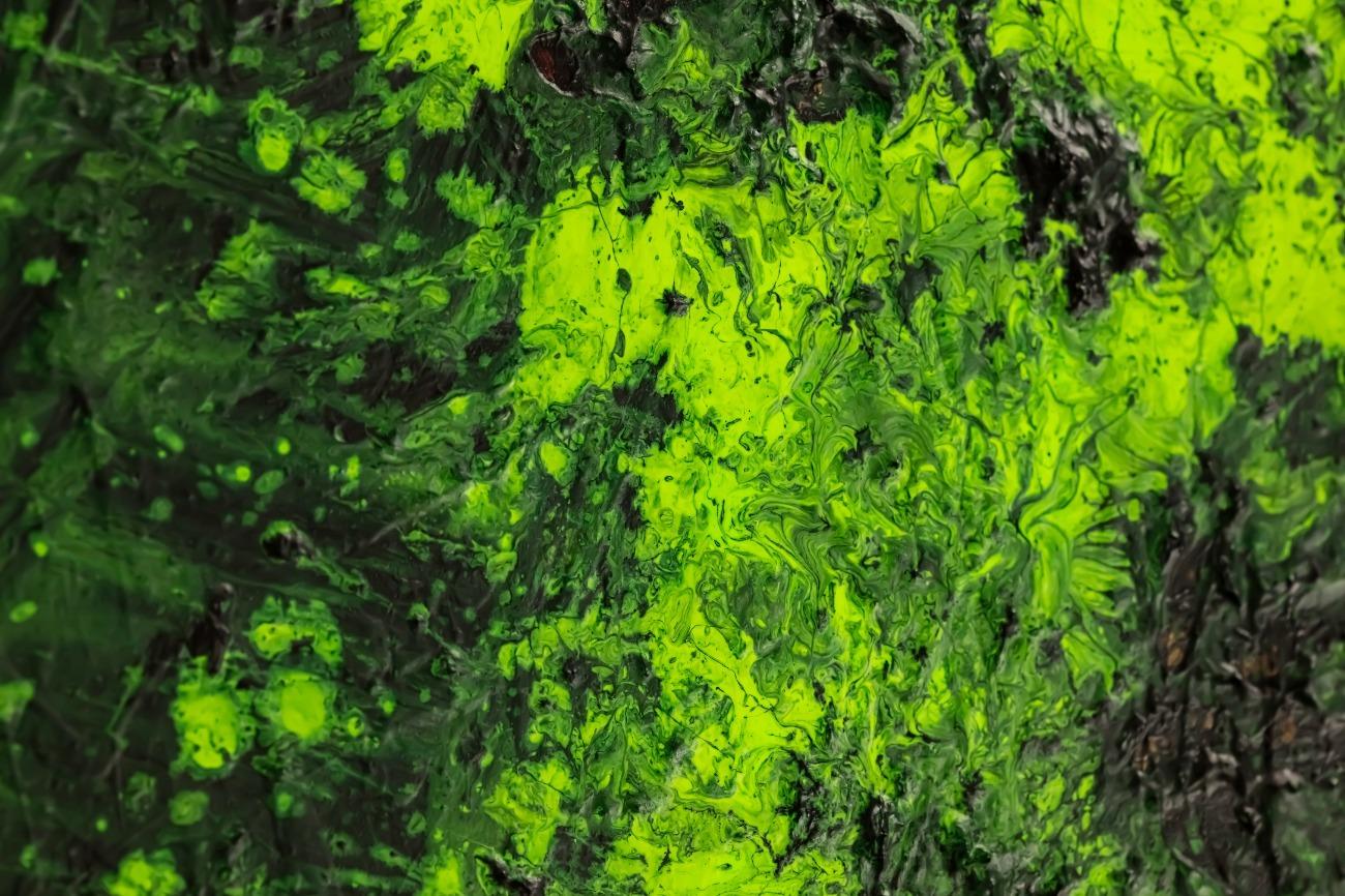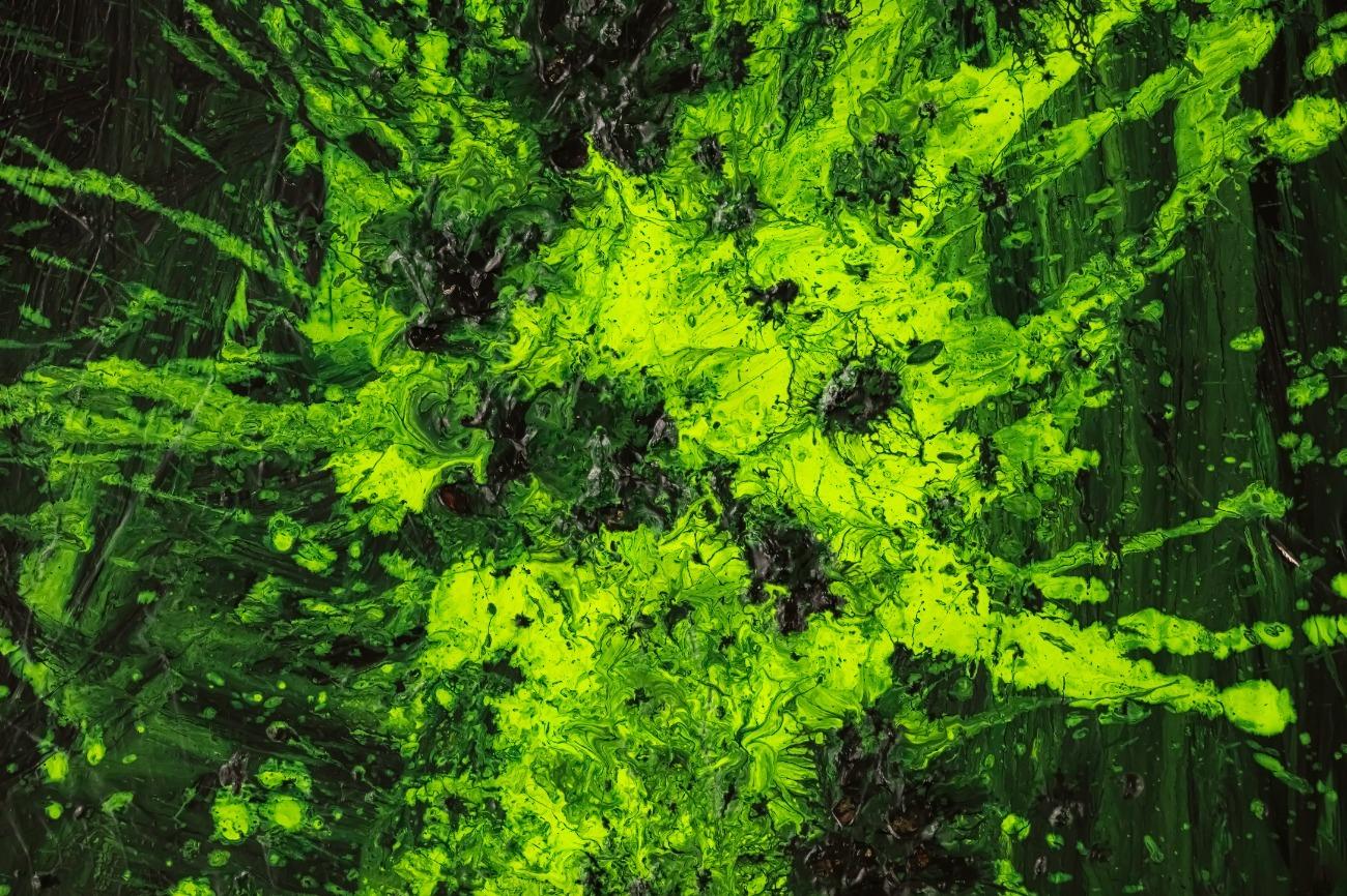 Gemälde Original abstrakt 100x72cm Action Painting Modern Art auf Leinwand Mischtechnik schwarz NEON grün hellgrün Einzelstück