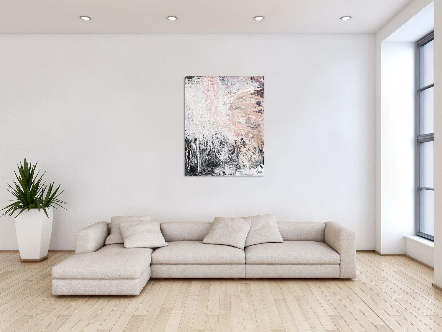 Gemälde Original abstrakt 100x80cm Action Painting Moderne Kunst handgemalt Mischtechnik weiß beige grau Unikat