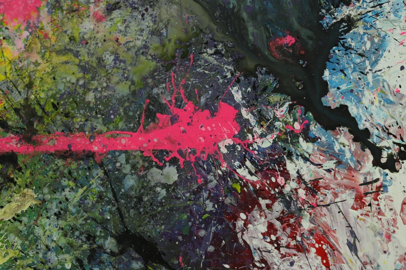 Abstraktes Gemälde auf Leinwand Gemälde Original abstrakt 120x200cm Action Painting expressionistisch handgemalt Splash Art sehr bunt hochwertig in 120x200cm von Alex Zerr