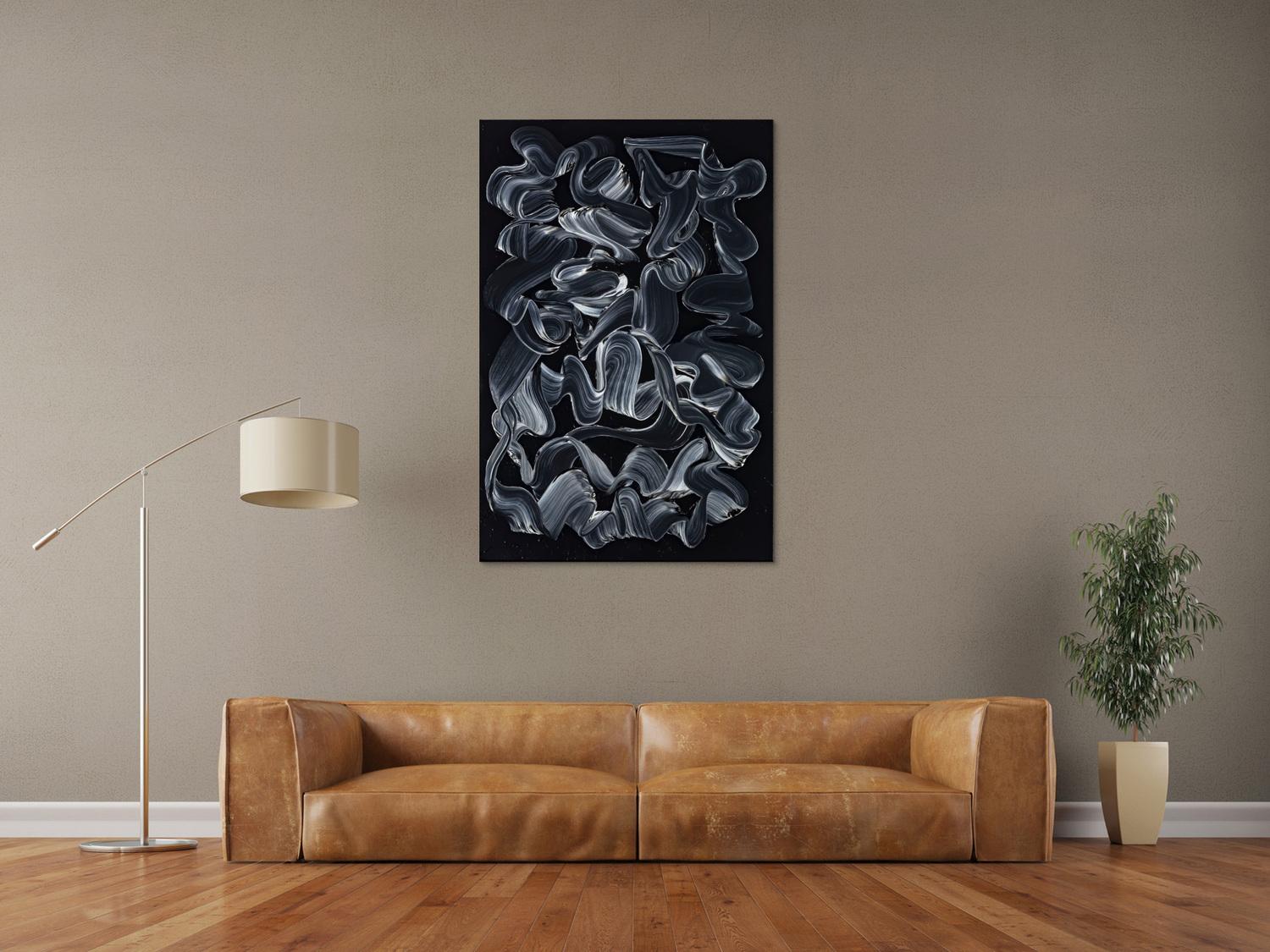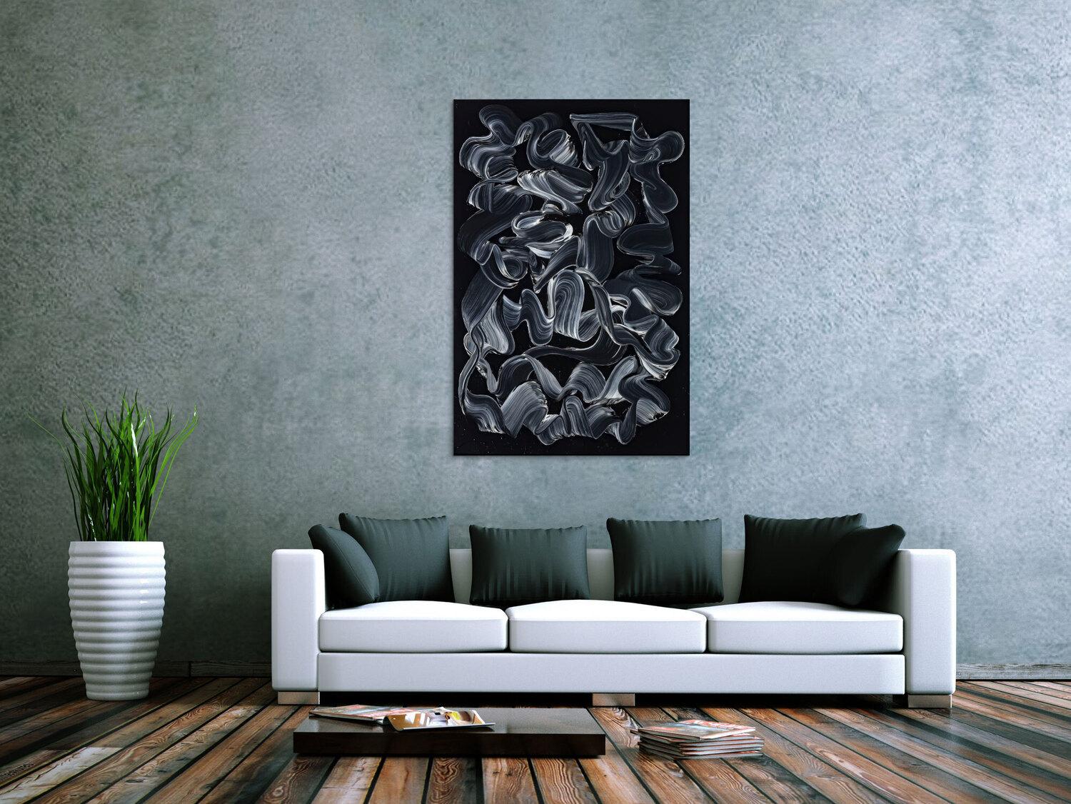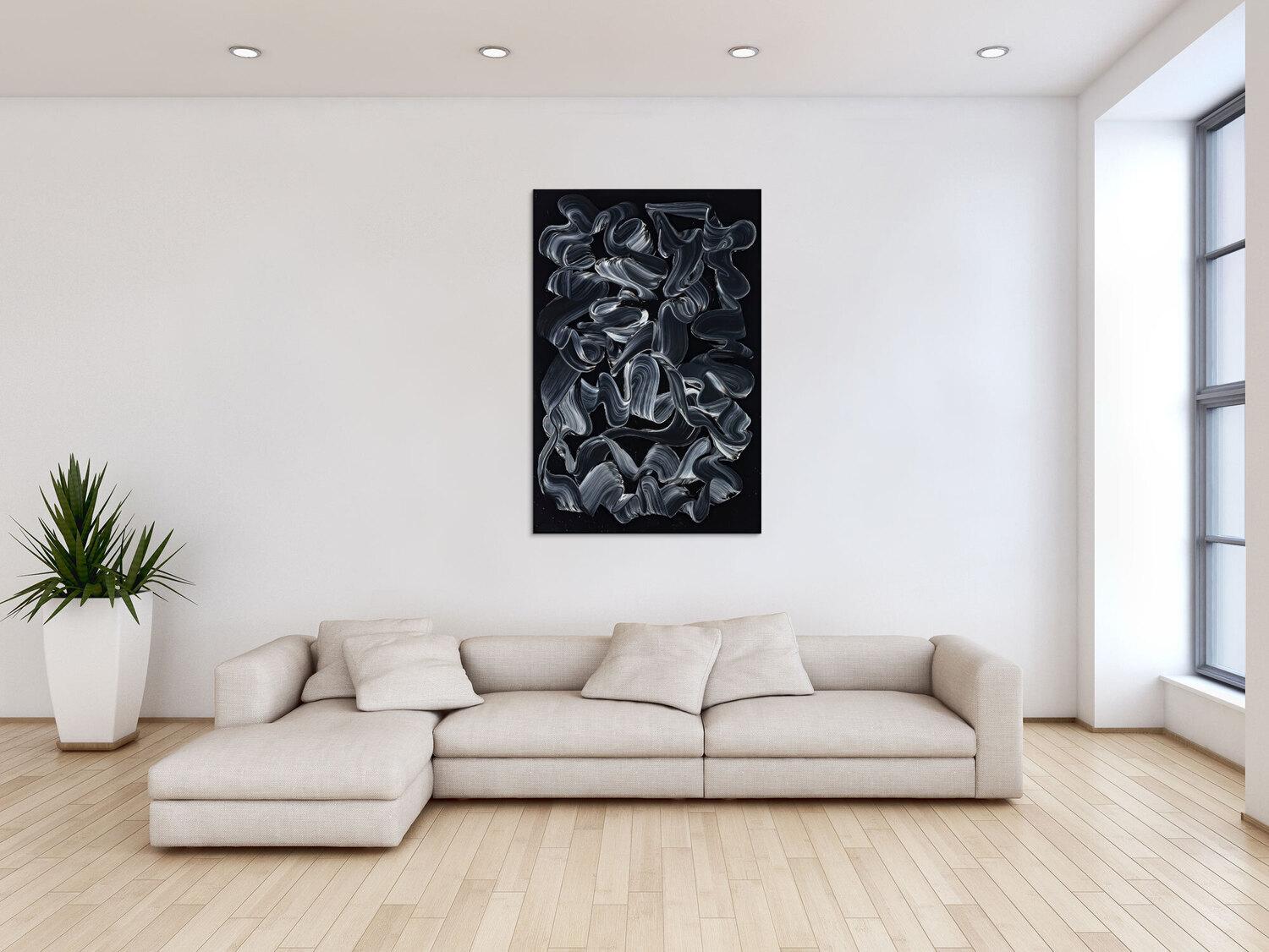 Abstraktes Gemälde auf Leinwand Gemälde Original abstrakt 120x80cm Minimalistisch expressionistisch handgemalt  schwarz schwarz weiss anthrazit hochwertig in 120x80cm von Alex Zerr