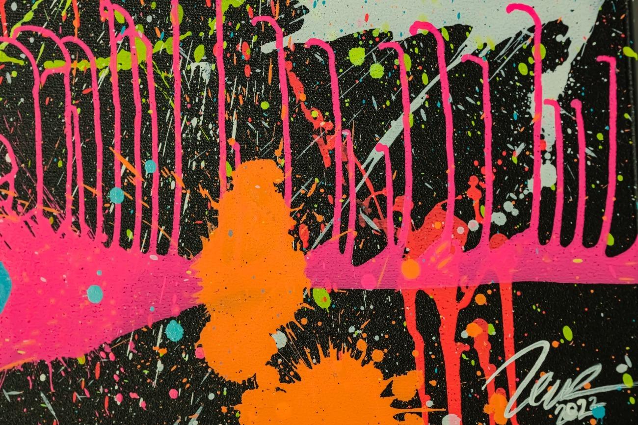 Dieses abstrakte Acrylbild ist ein handgemaltes Original vom Künstler Alex Zerr aus Bad Lisppringe und ist im Jahr 2022 in seinem Atelier entstanden. Das Bild hat eine Größe von 130x130cm und ist bereits auf einem hochwertigen und stabilem Rahmen aufgespannt. Dadurch kann das Bild nach der Lieferung direkt an die Wand gehängt werden und sofort in Ihrem Raum wirken. Alle Seiten des Gemäldes sind passend zum Motiv bemalt, so dass kein zusätzlicher Rahmen benötigt wird.