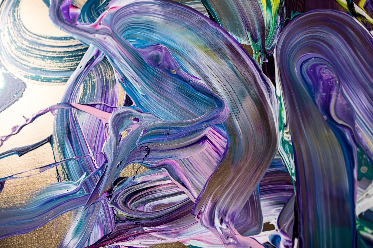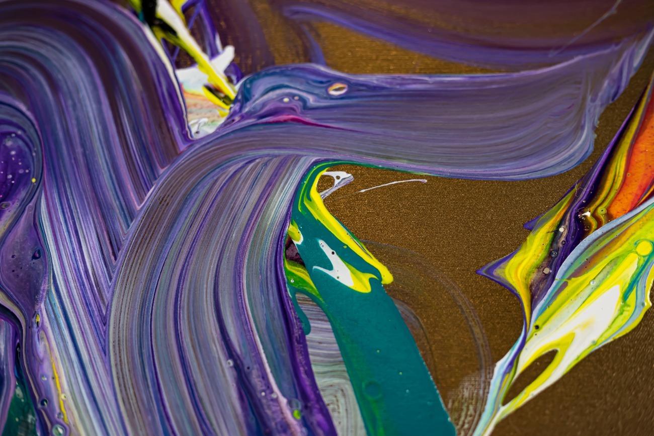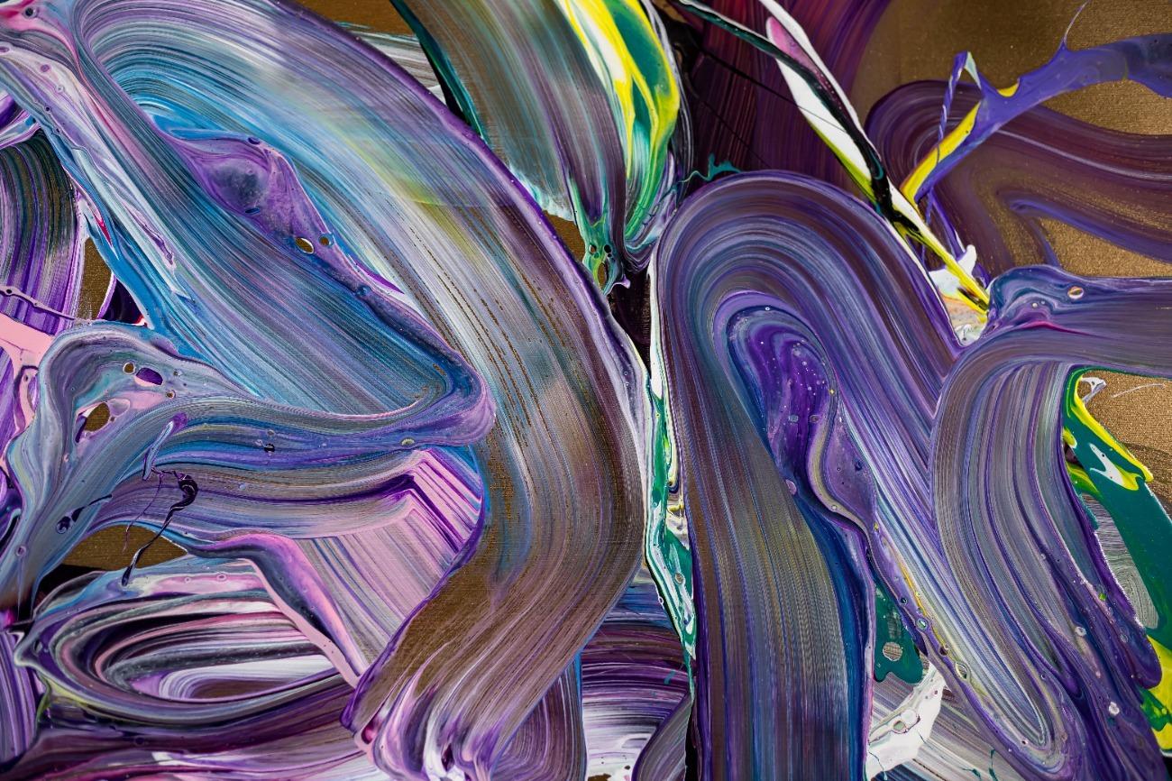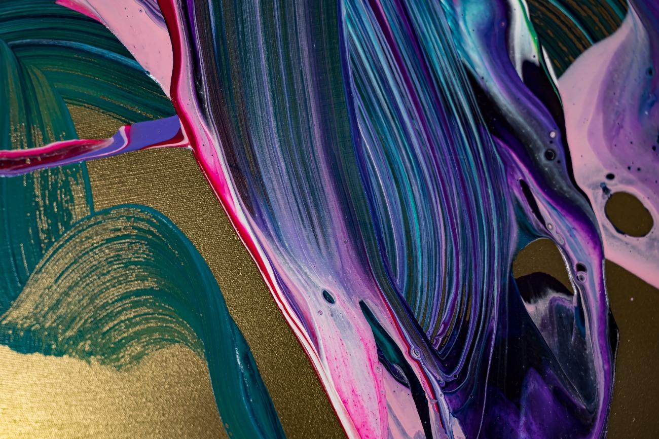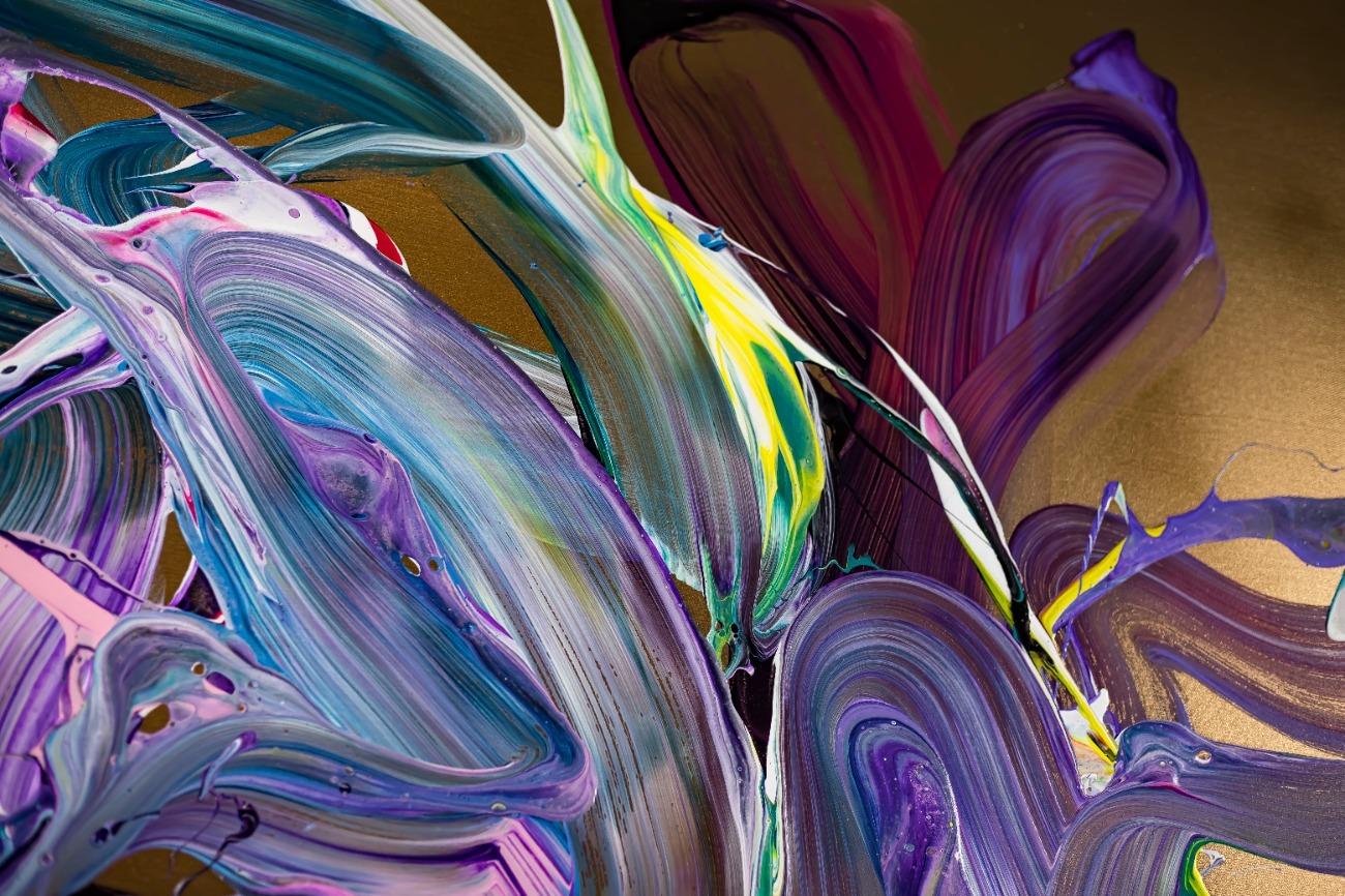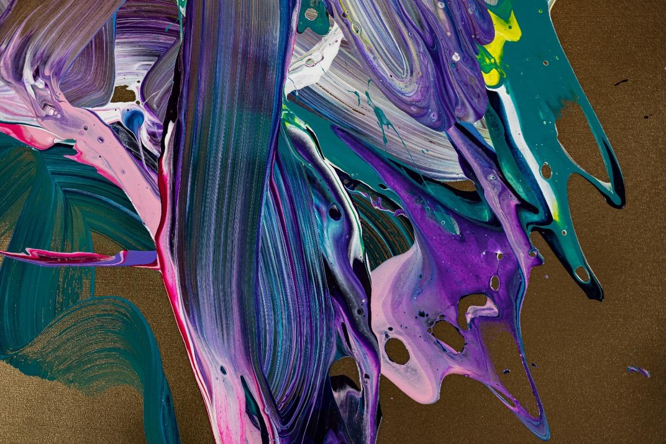 Gemälde Original abstrakt 150x130cm Action Painting Moderne Kunst handgefertigt Mischtechnik gold violett rosa