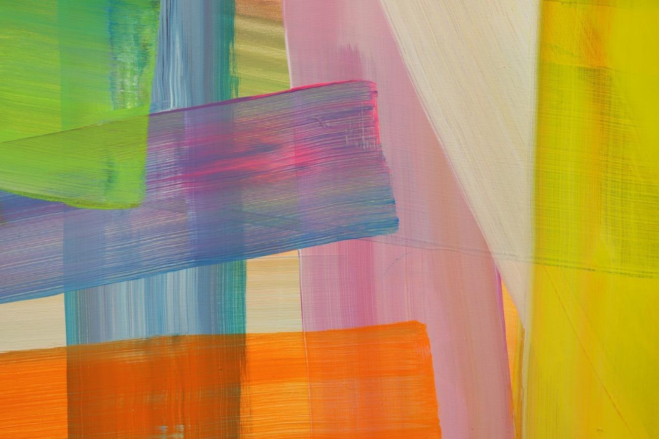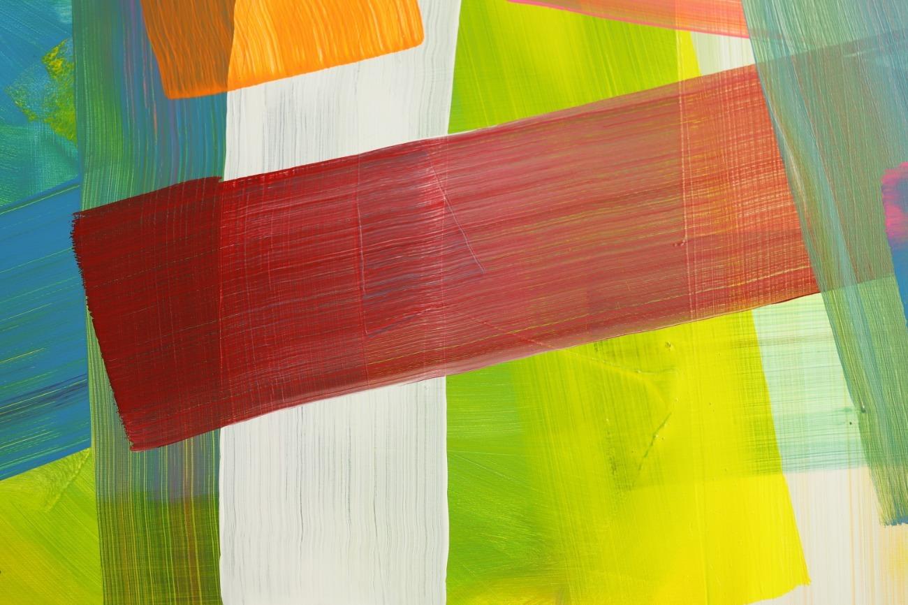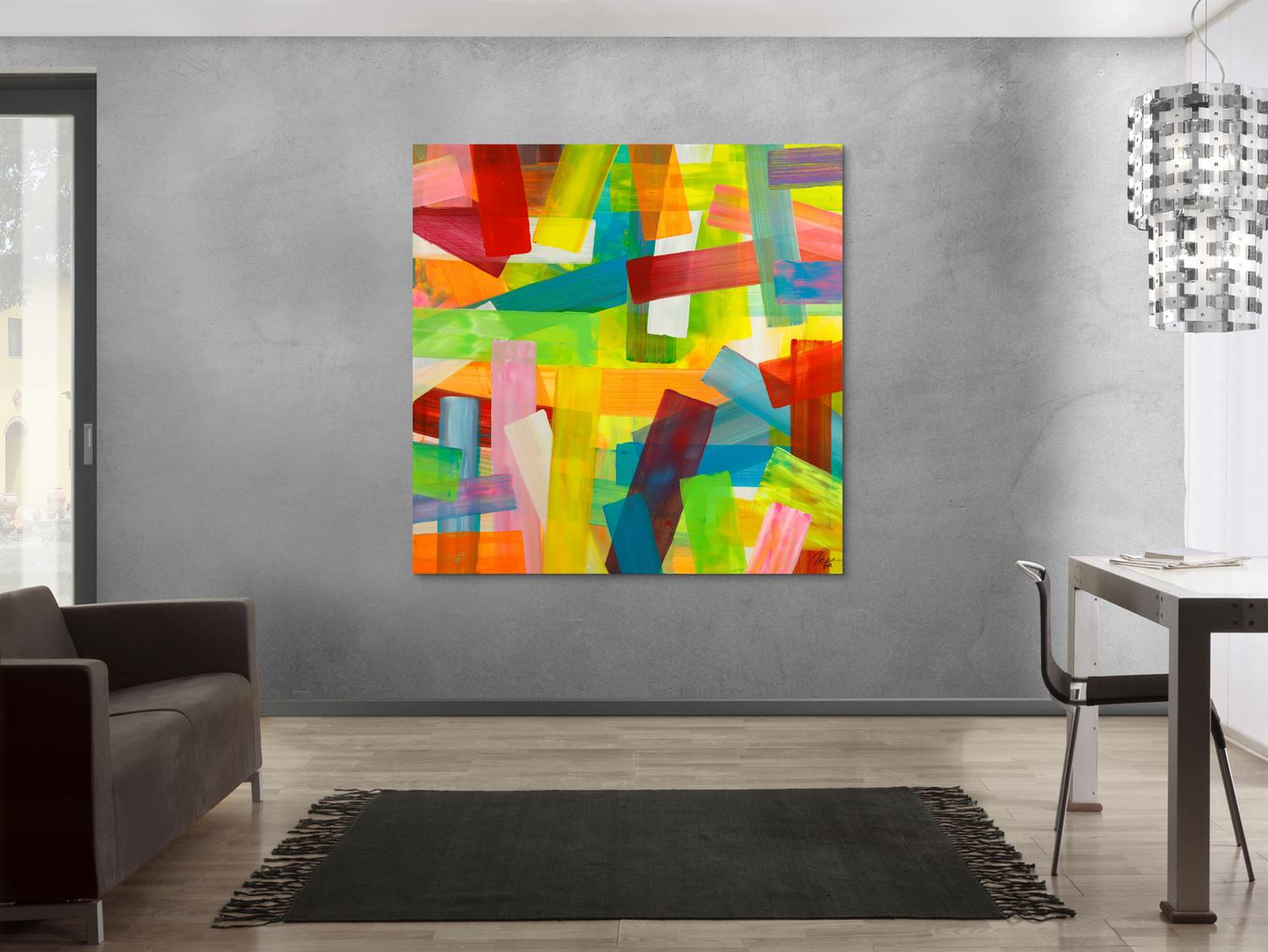 Gemälde Original abstrakt 150x150cm bunte Streifen Mischtechnik Modern Art handgefertigt gelb rot hellgrün Einzelstück