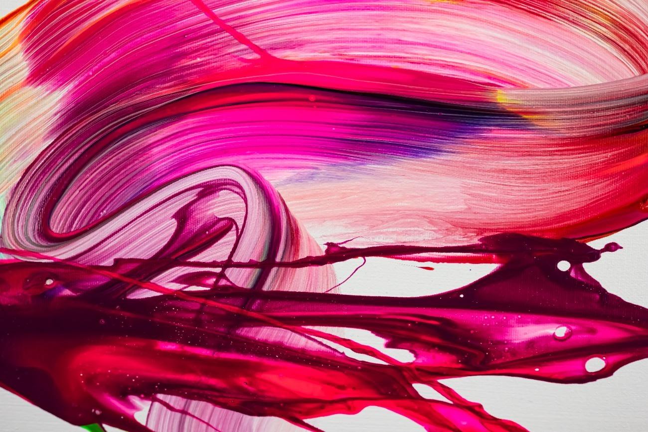 Gemälde Original abstrakt 60x90cm Action Painting handgefertigt Splash Art Neon Farben bunt weiß pink einzigartig