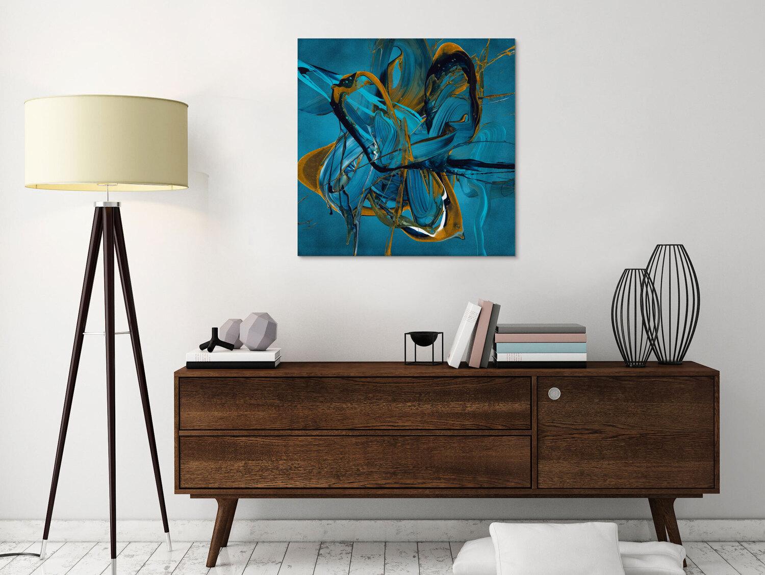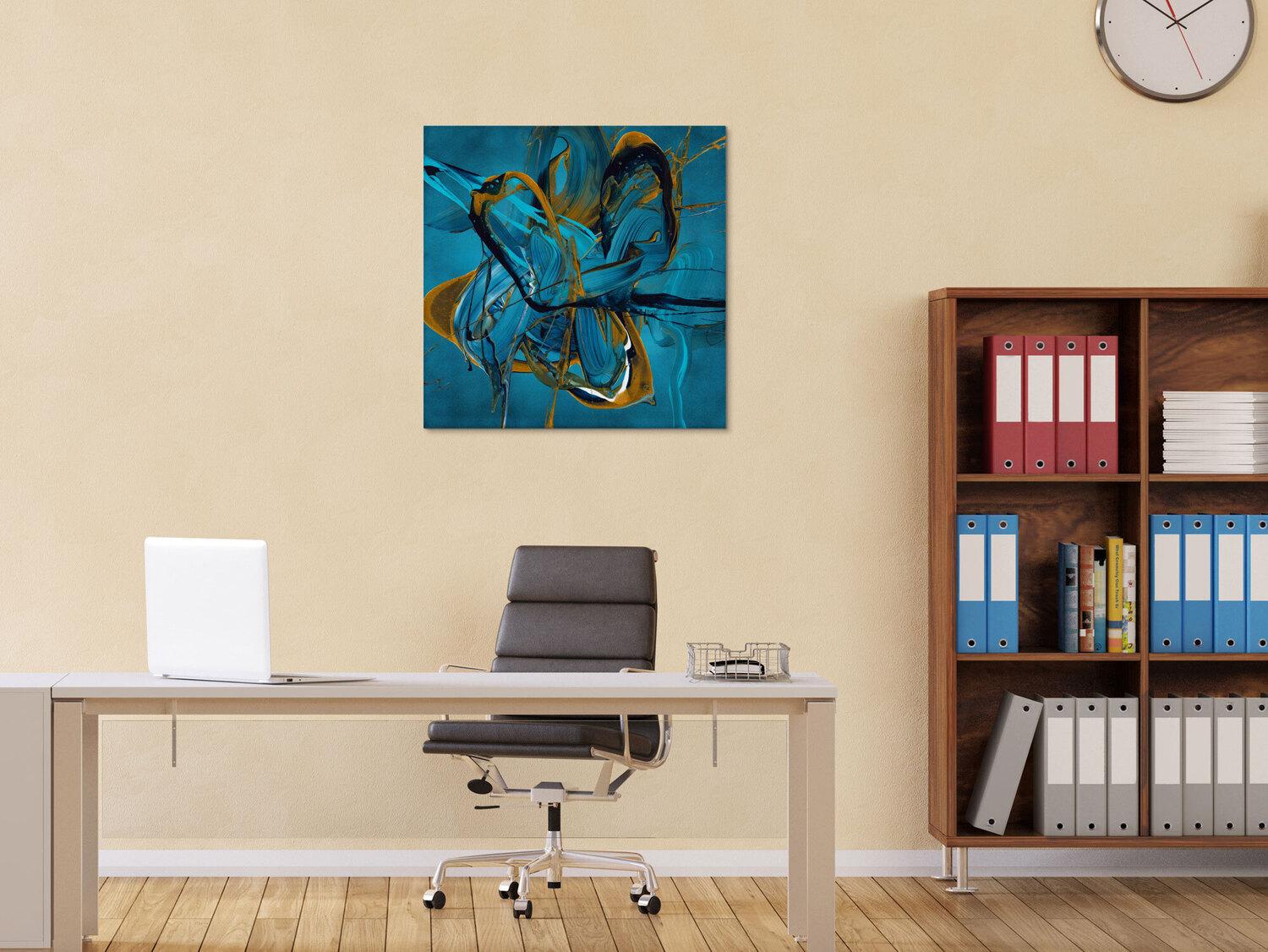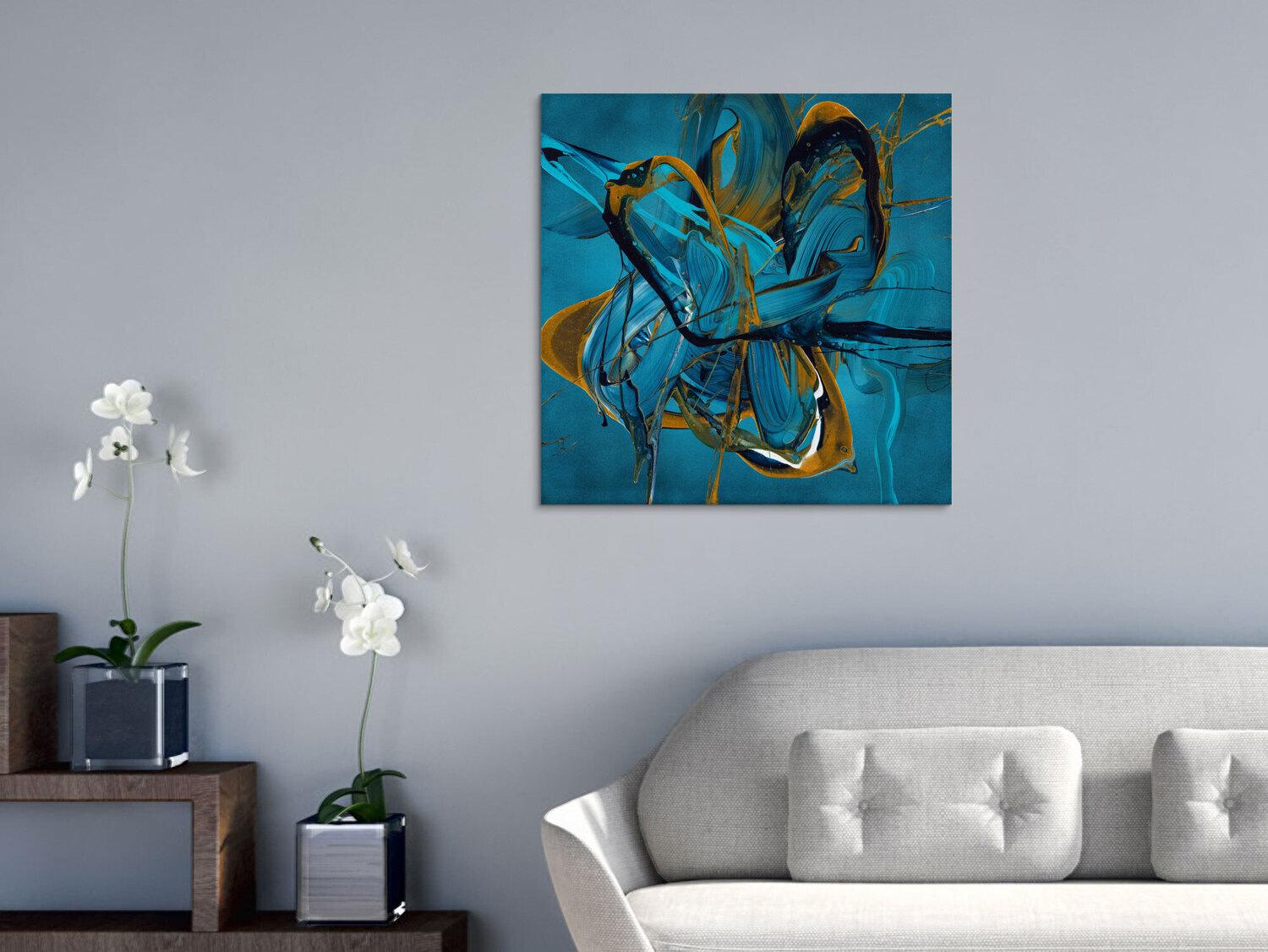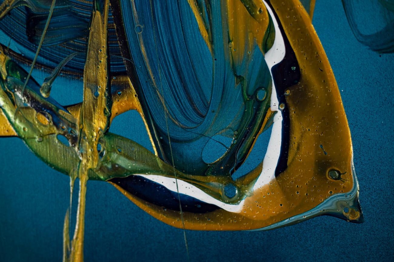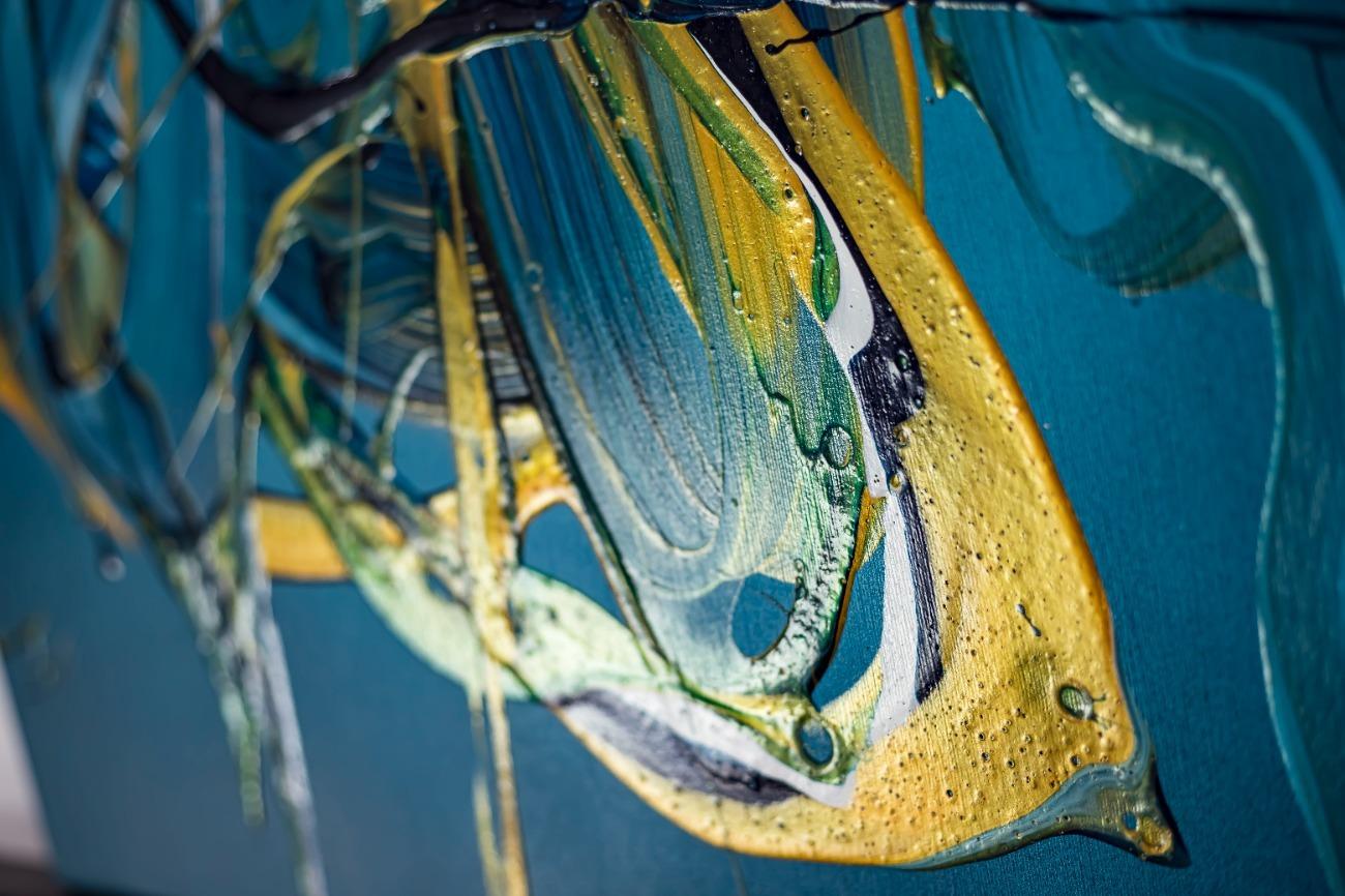 Gemälde Original abstrakt 70x70cm Action Painting expressionistisch auf Leinwand Fluid Painting blau gold türkis Unikat