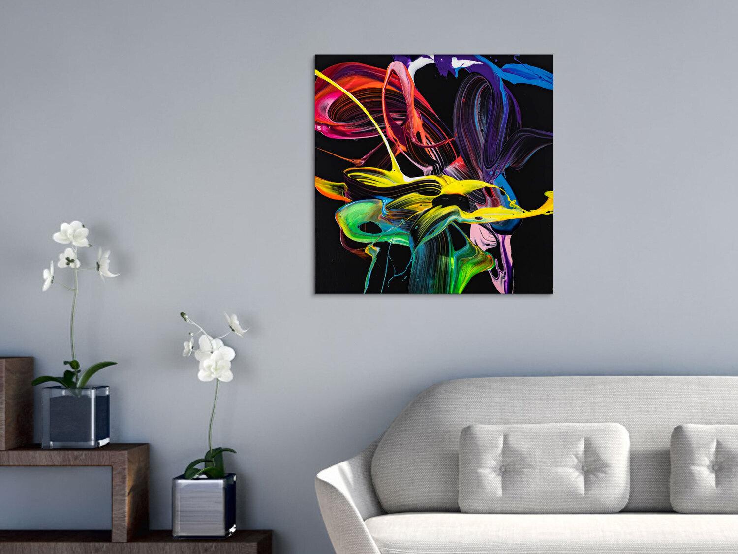 Abstraktes Gemälde auf Leinwand Gemälde Original abstrakt 70x70cm Action Painting expressionistisch handgemalt Splash Art schwarz bunt rot hochwertig in 70x70cm von Alex Zerr
