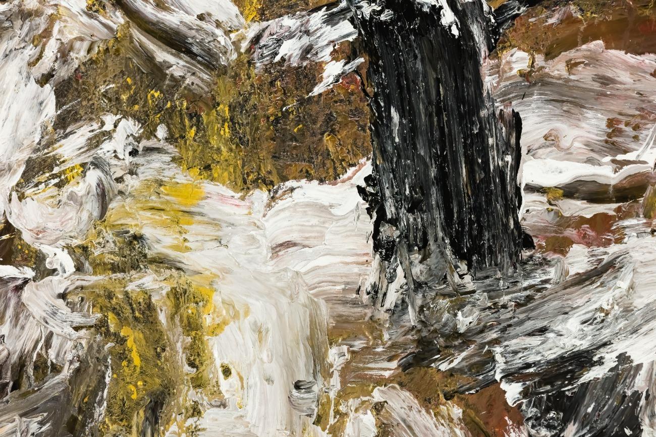 Gemälde Original abstrakt 75x130cm Action Painting Modern Art auf Leinwand Mischtechnik weiß schwarz anthrazit Einzelstück