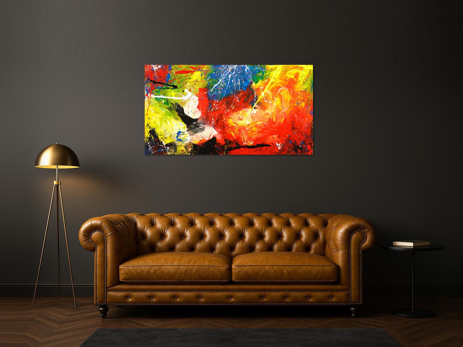 Gemälde Original abstrakt 80x150cm Action Painting Modern Art handgefertigt rot gelb orange einzigartig