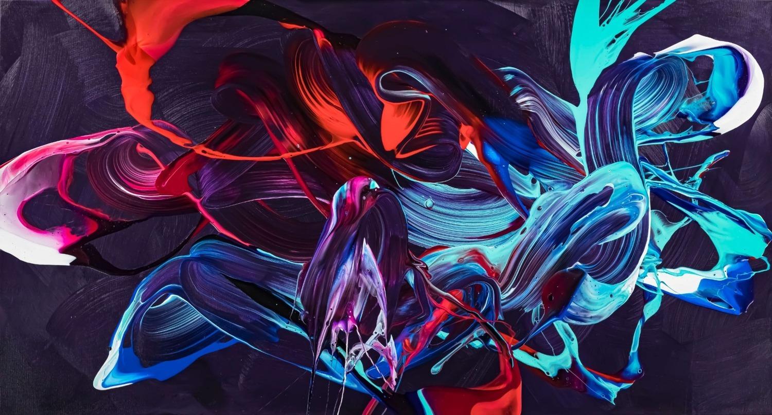 Gemälde Original abstrakt 80x150cm Minimalistisch zeitgenössisch handgemalt Action Painting violett blau rot Unikat