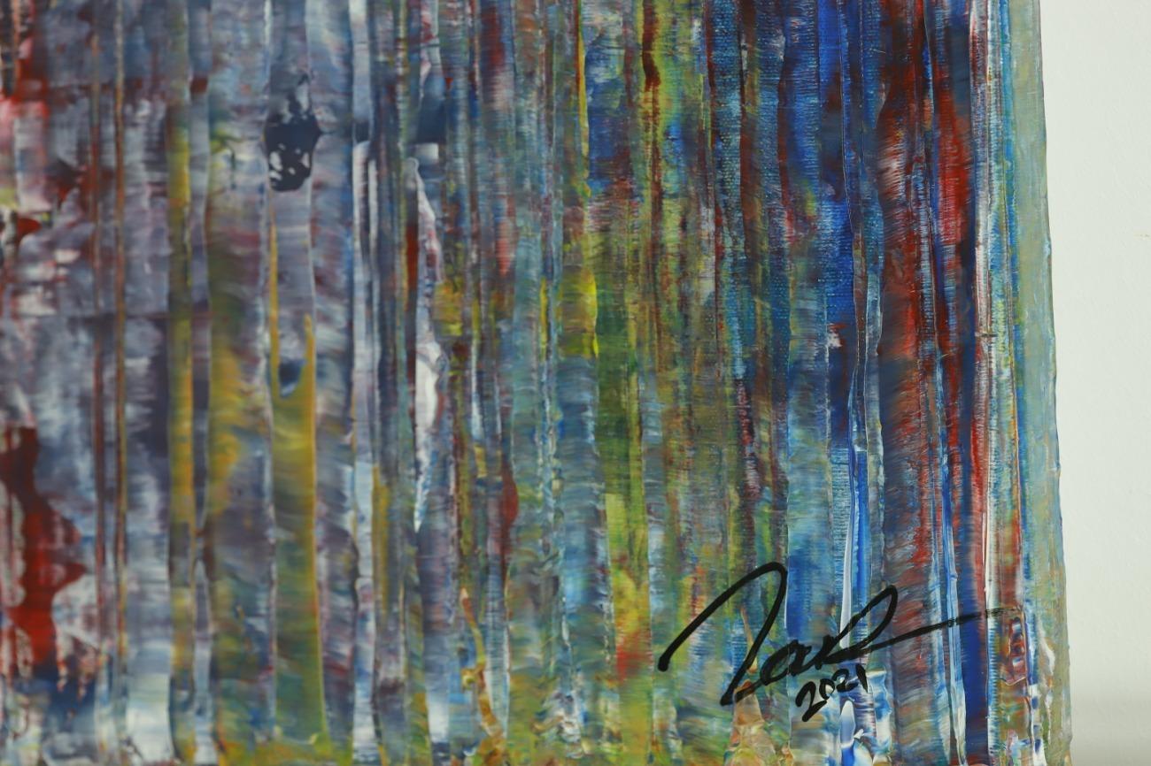 Dieses abstrakte Acrylbild ist ein handgemaltes Original vom Künstler Alex Zerr aus Bad Lisppringe und ist im Jahr 2021 in seinem Atelier entstanden. Das Bild hat eine Größe von 80x180cm und ist bereits auf einem hochwertigen und stabilem Rahmen aufgespannt. Dadurch kann das Bild nach der Lieferung direkt an die Wand gehängt werden und sofort in Ihrem Raum wirken. Alle Seiten des Gemäldes sind passend zum Motiv bemalt, so dass kein zusätzlicher Rahmen benötigt wird.