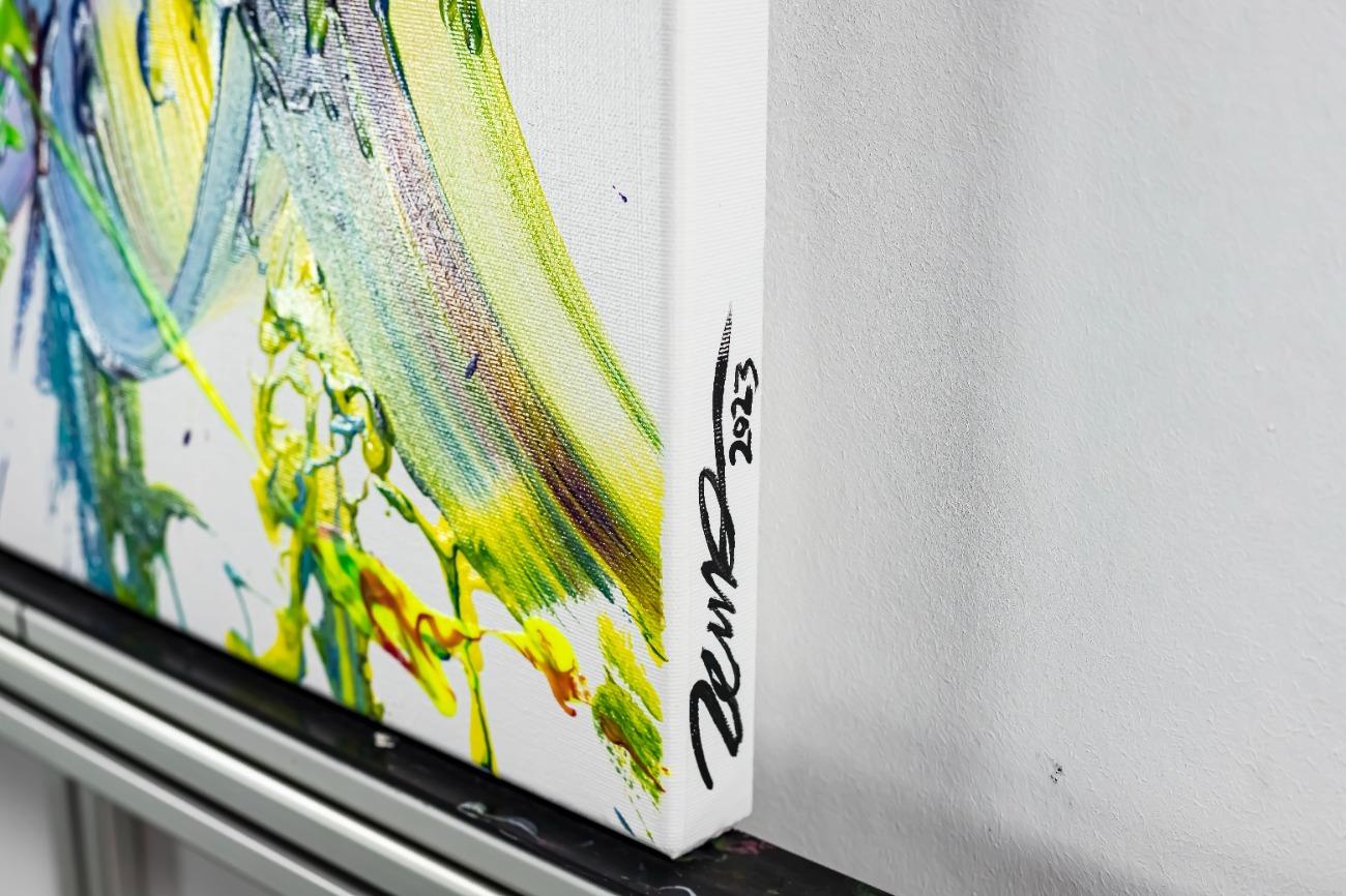 Jedes Gemälde auf xxl-art.de ist ein handgemaltes Original von Alex Zerr, handsigniert und mit seinem Handabdruck auf der Rückseite versehen. Dies garantiert die Authentizität und den Wert des Kunstwerks.