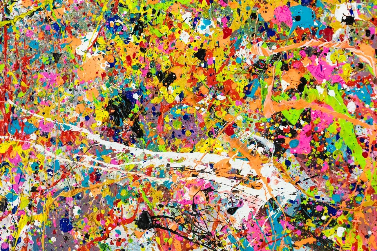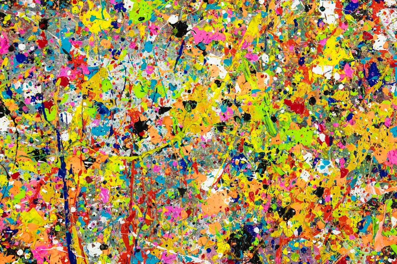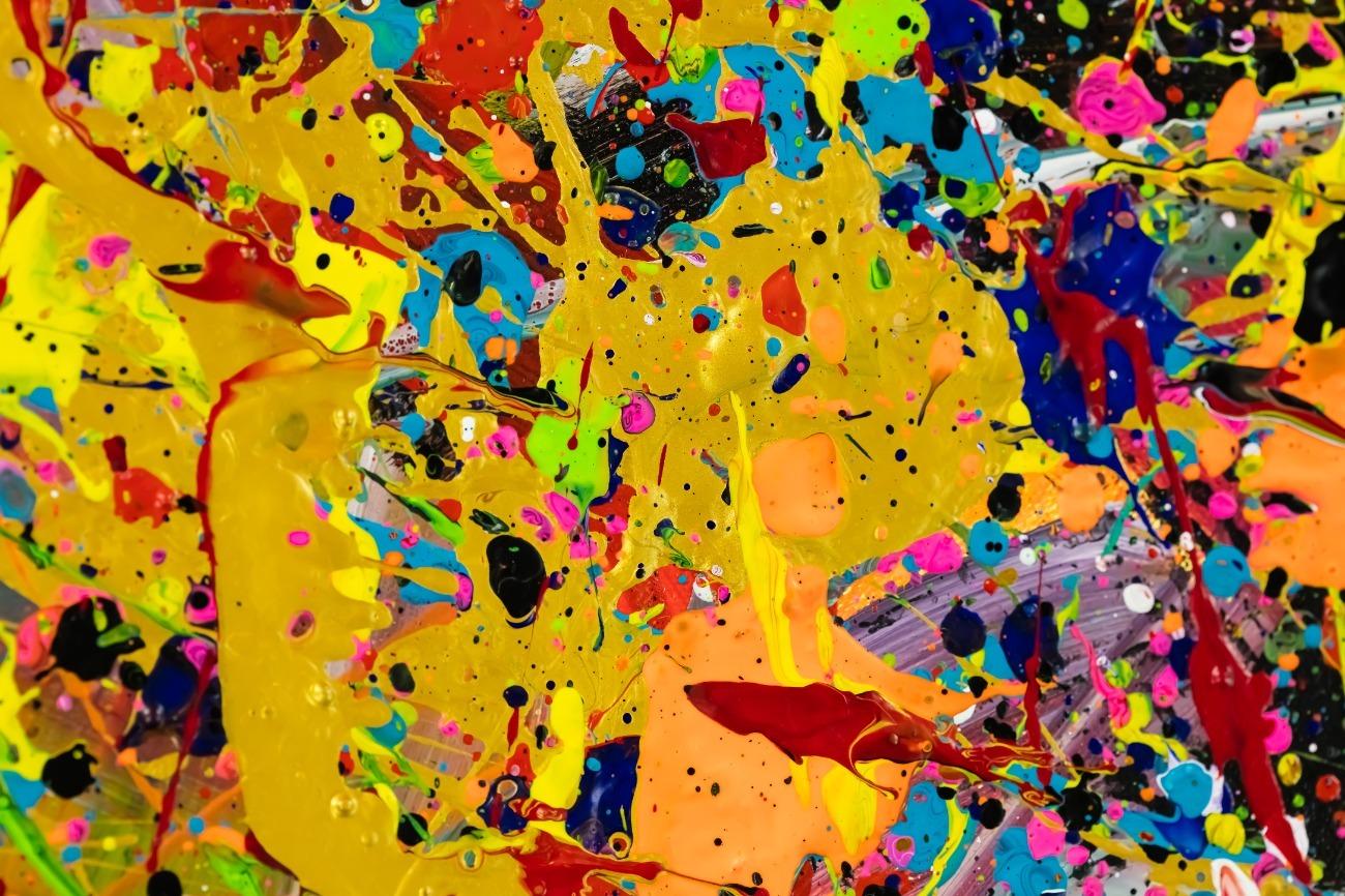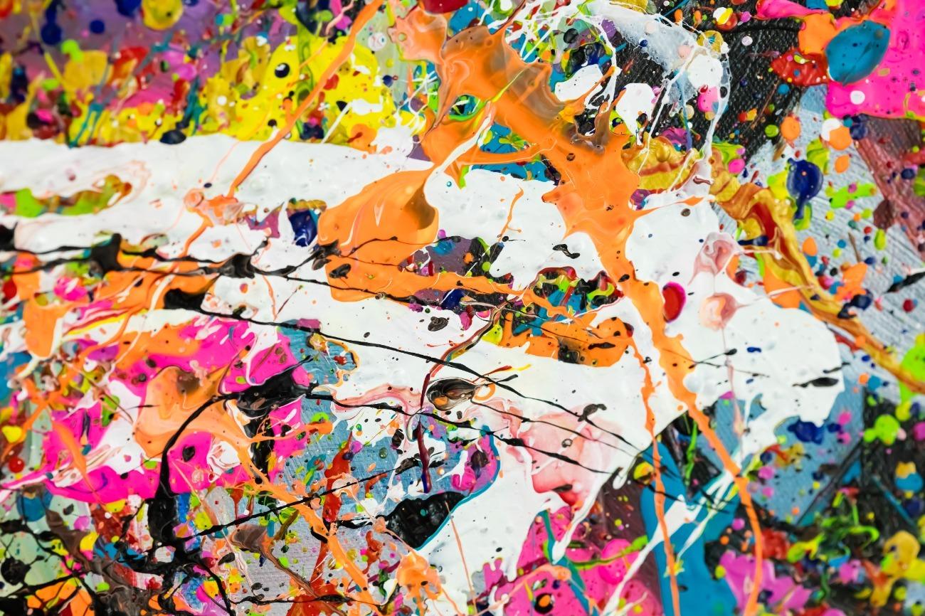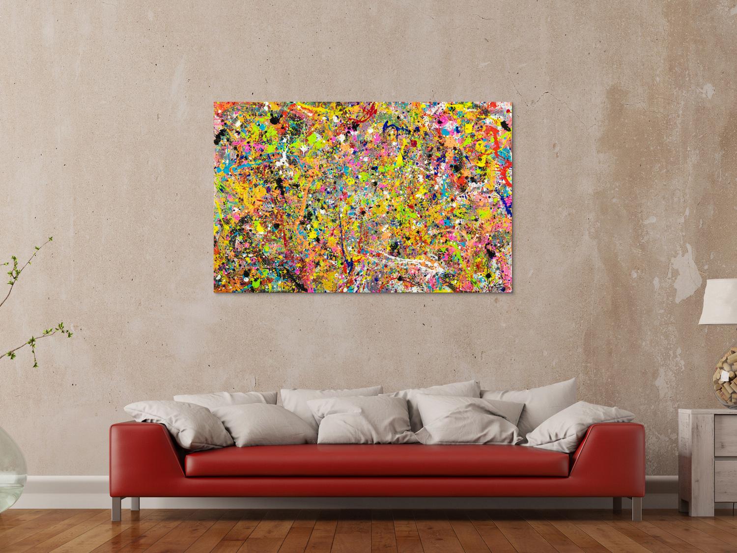 Gemälde Original abstrakt 90x140cm Action Painting Moderne Kunst handgefertigt Action Painting bunt orange gelb Einzelstück