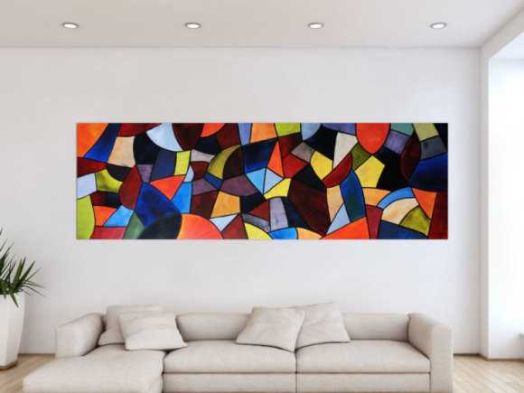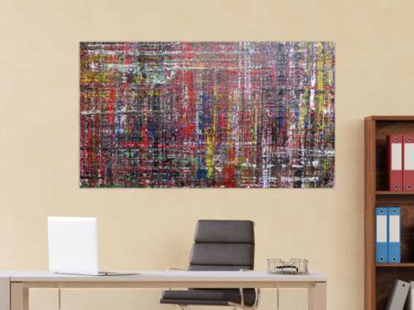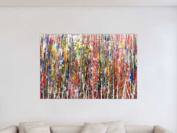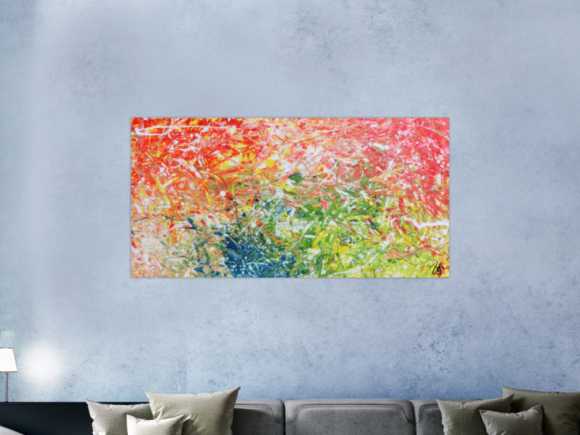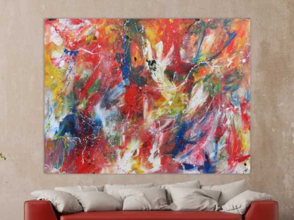 Ich habe mich für bunte und großformatige Kunstwerke entschieden um eine Spannung zwischen meinen weissen Flächen zu erhalten.